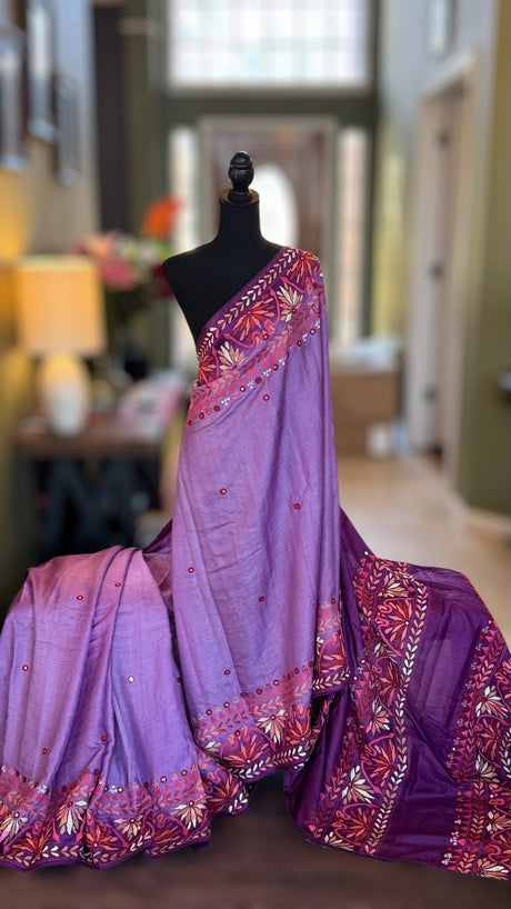 Purple Kathiawadi Hand Embroidered