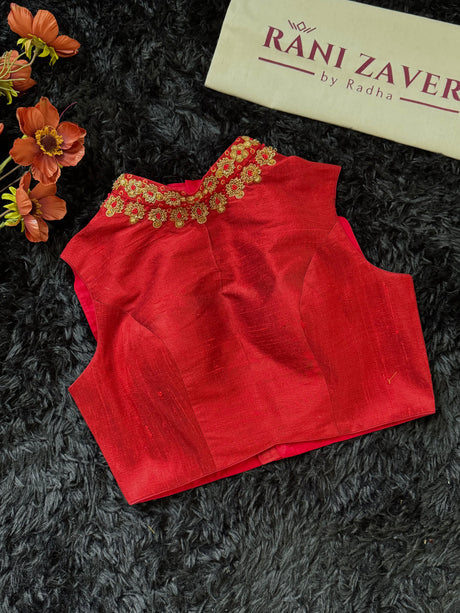 Rust Munga Silk With Heavy Embroidered Blouse