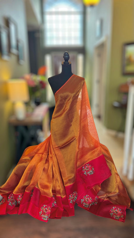 Korvai Pink/Orange combo Kanchipuram Pure Silk