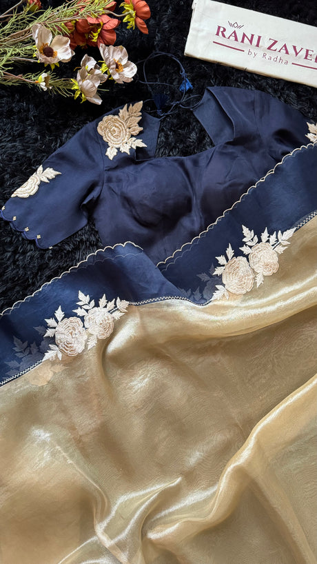 Navy Blue and Gold Combo Kora Organza