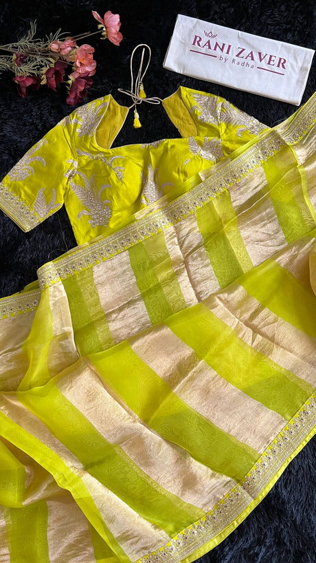 Yellow Checks Green Combo Silk Cotton Kanchipuram