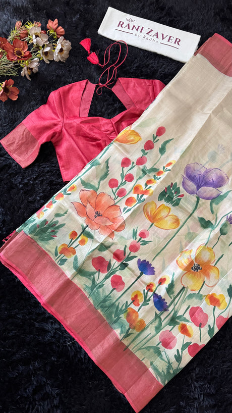 Rust Orange Hand Painted Tussar Silk