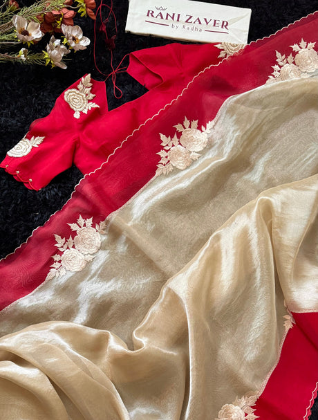 Red and Gold Combo Kora Organza