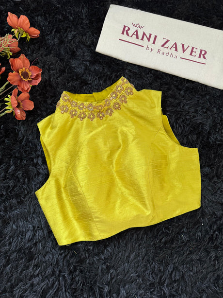 Chartreuse Tissue and Organza Silk Saree