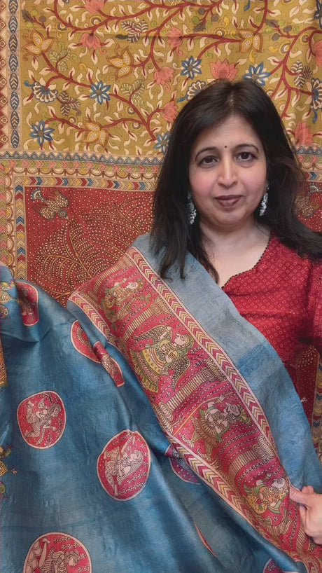 Mata Ni Pachedi - Blue - Tussar Silk