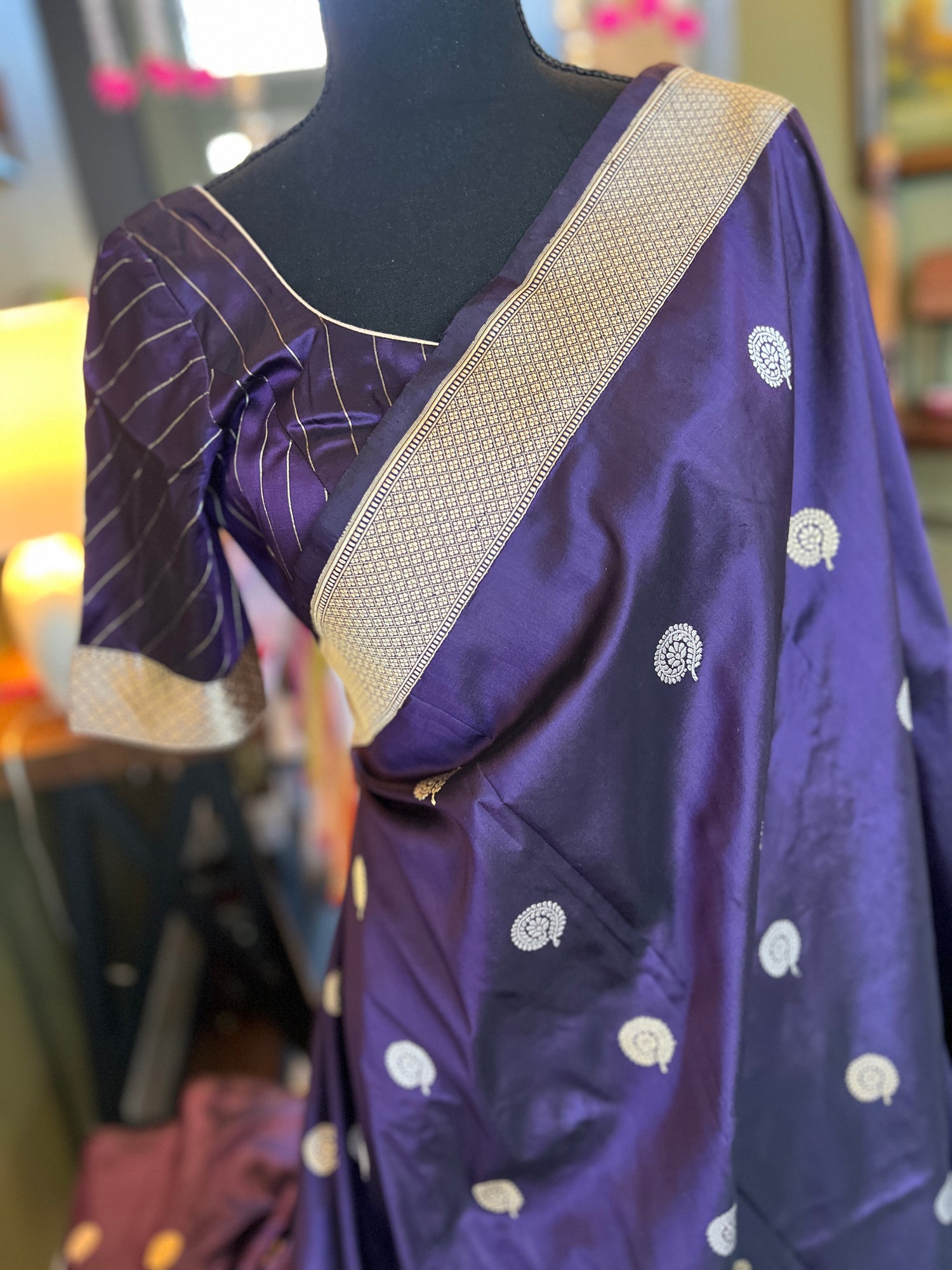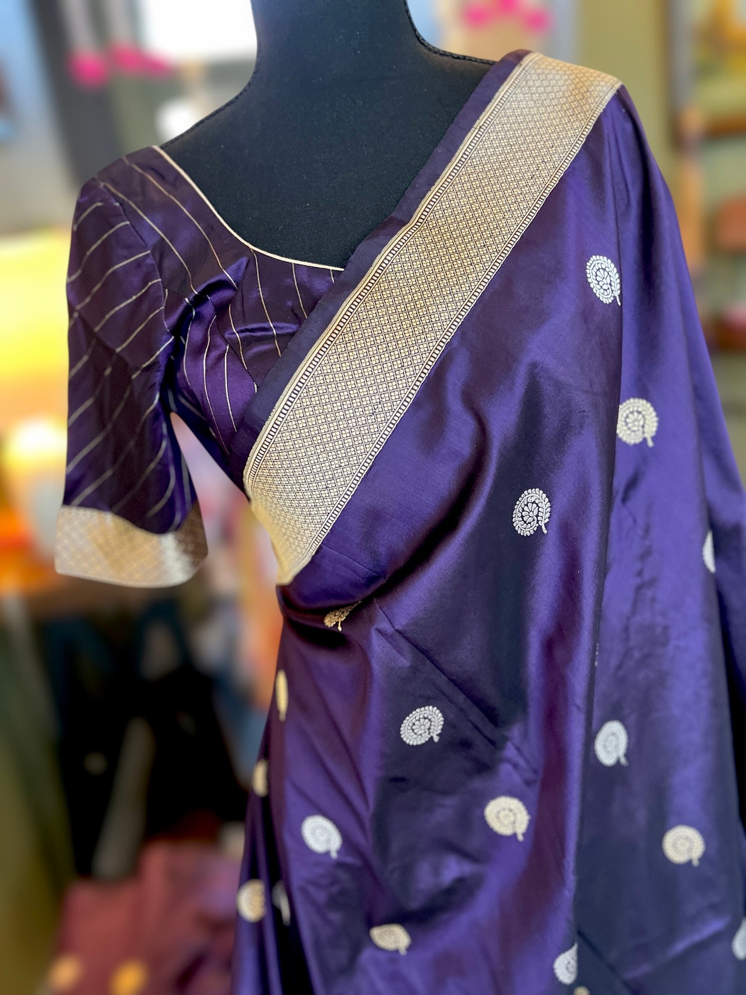 Banaras Handloom Katan Pure Silk KADUWA With Pre-Stitched Blouse