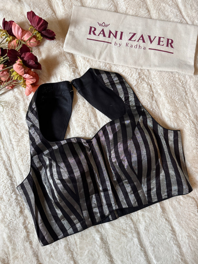 Black and Silver Stripes Tissue Halter Neck Blouse 38