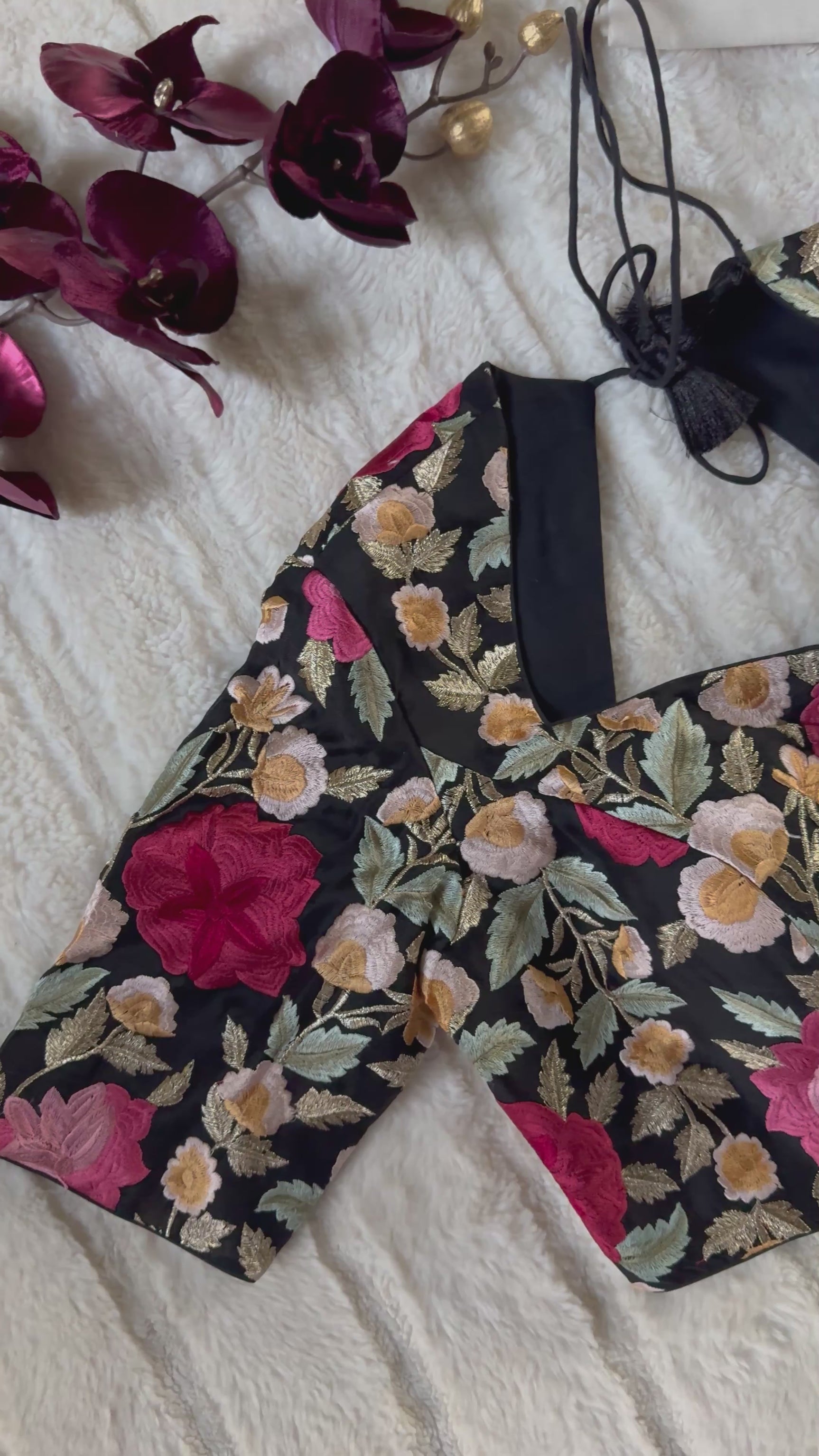 Black Floral Embroidered Blouse 38. This is a tailored blouse by Team Rani Zaver.