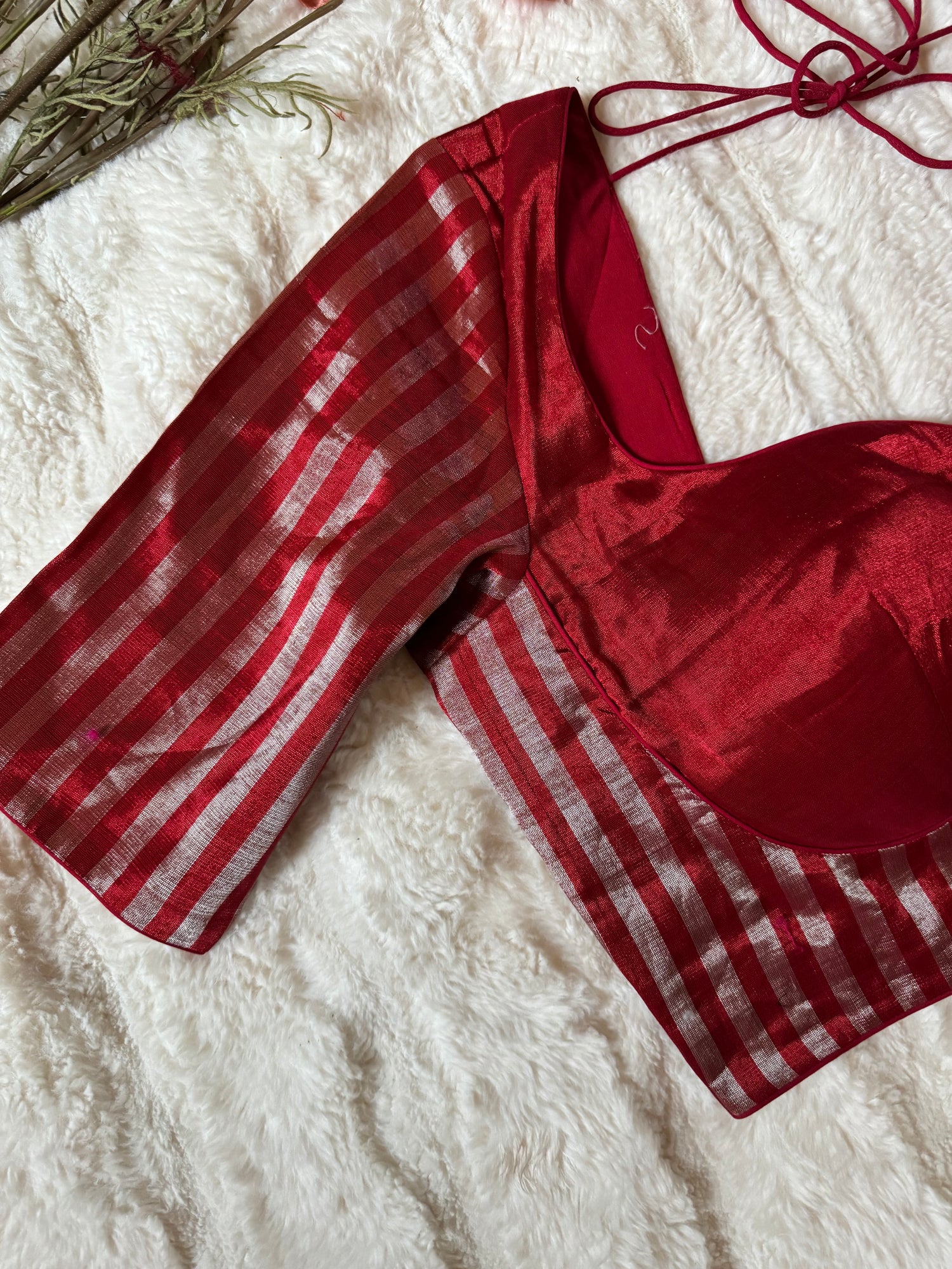 Red and Silver Stripes Tissue Blouse 38 40