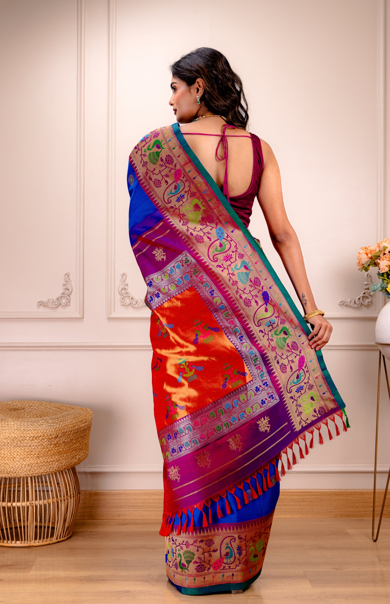Exclusive Gadwal Paithani FUSION Handloom Pure Silk Royal Blue