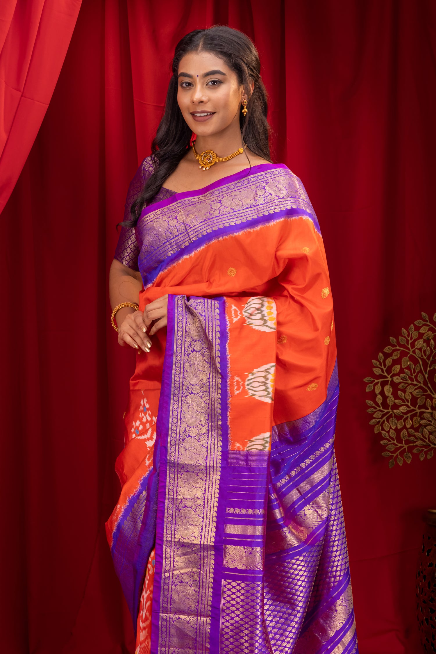 Ikkat Kanchipuram Fustion Handloom Pure Silk with Pre-Stitched Blouse