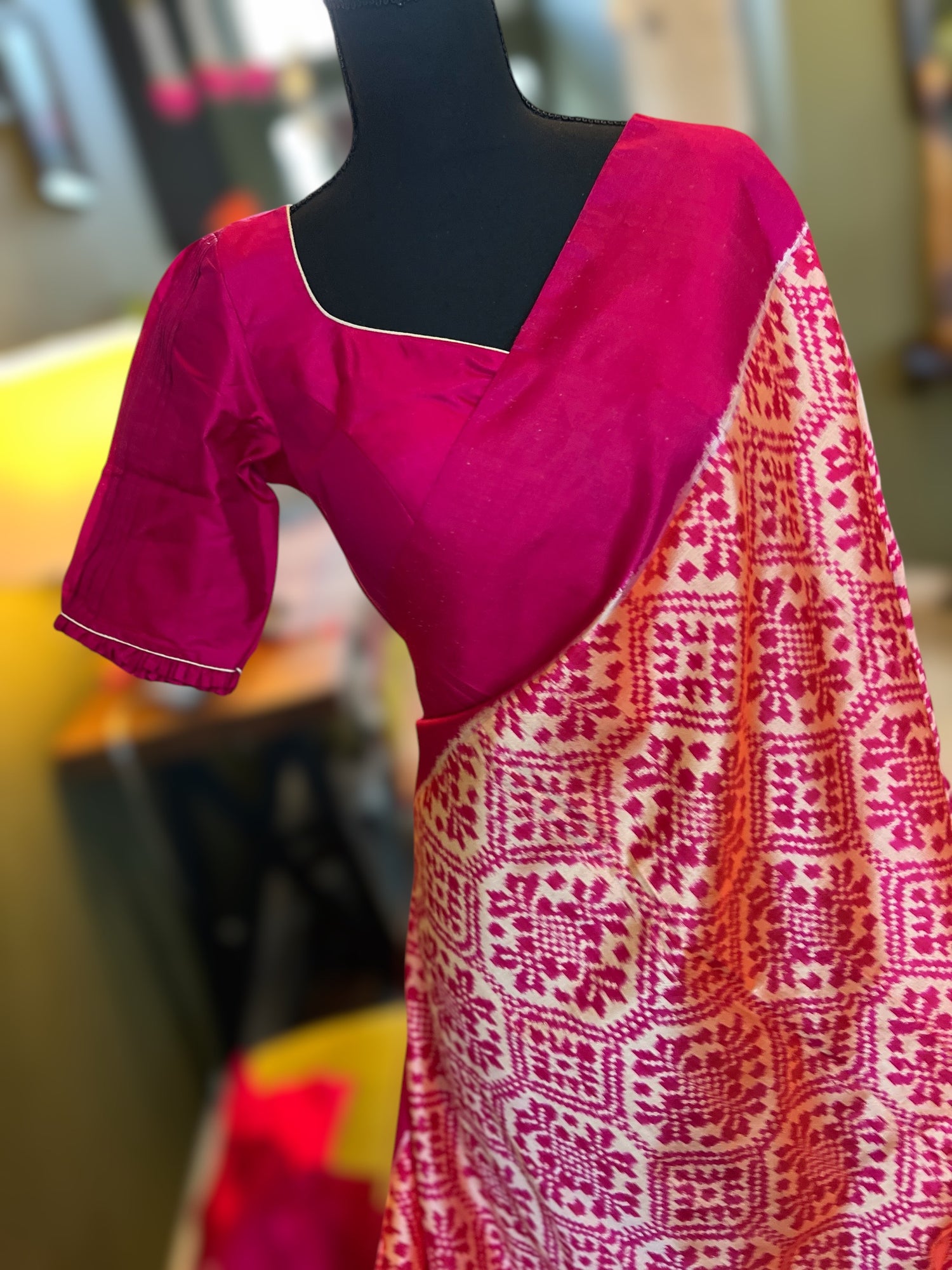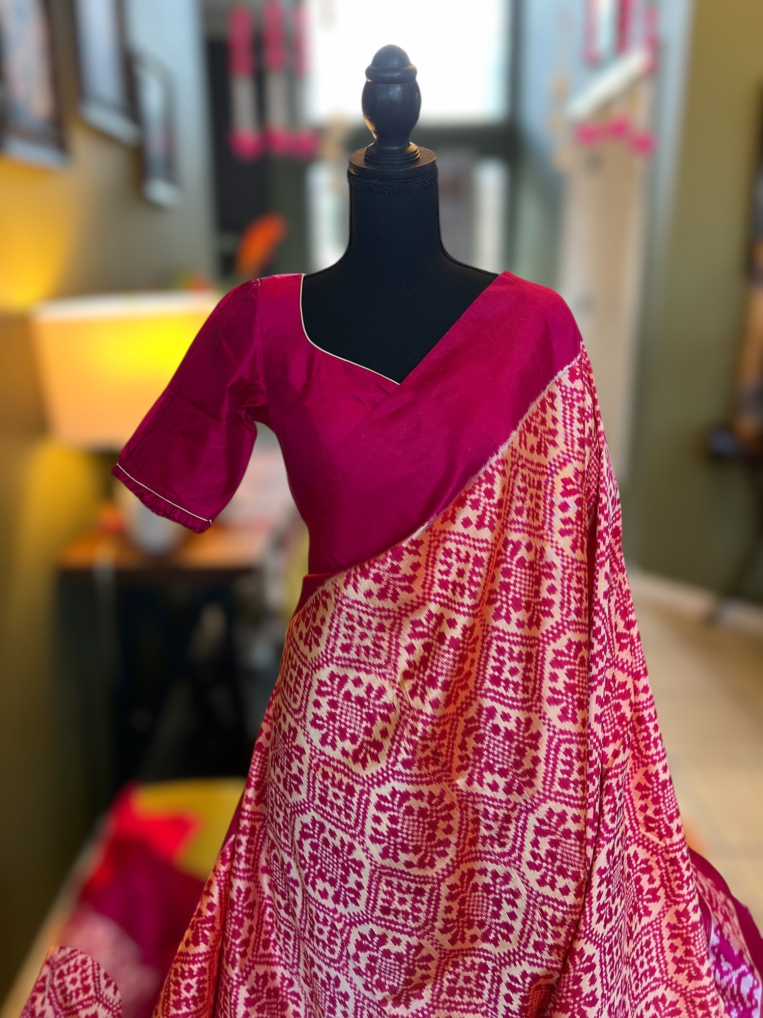 Ikkat Pochampally Handloom Pure Silk With Pre-Stitched Blouse