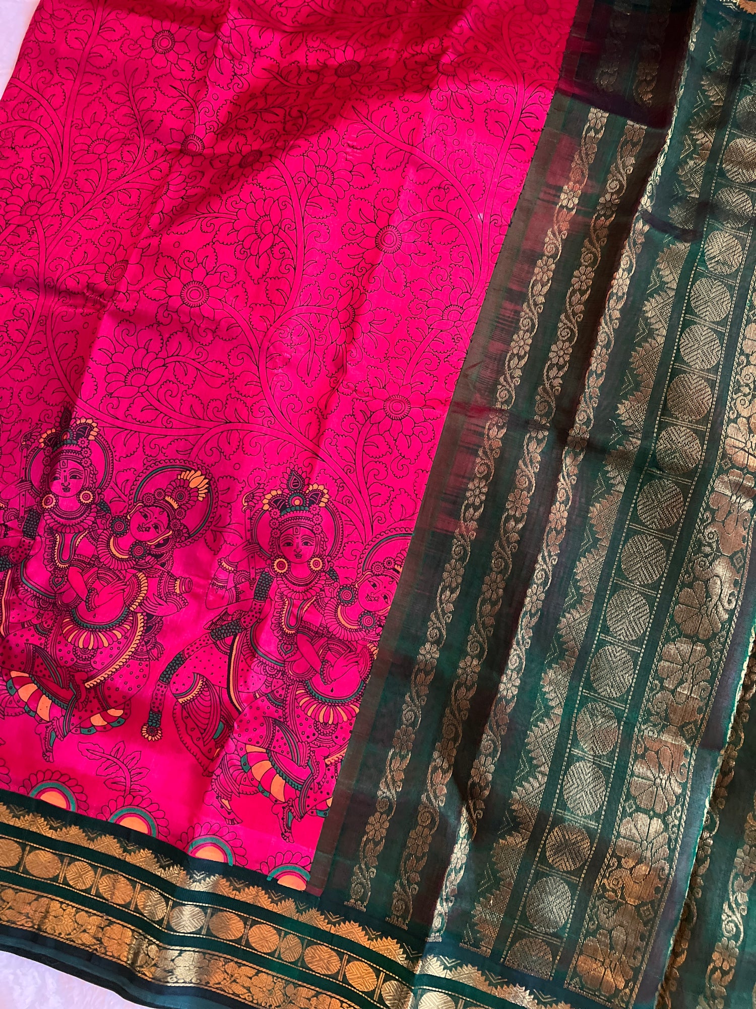 Fusia Pink/bottle green SECO Kanjeevaram pure Silk cotton Handloom Saree With Stitched Blouse is backordered and will ship as soon as it is back in stock.