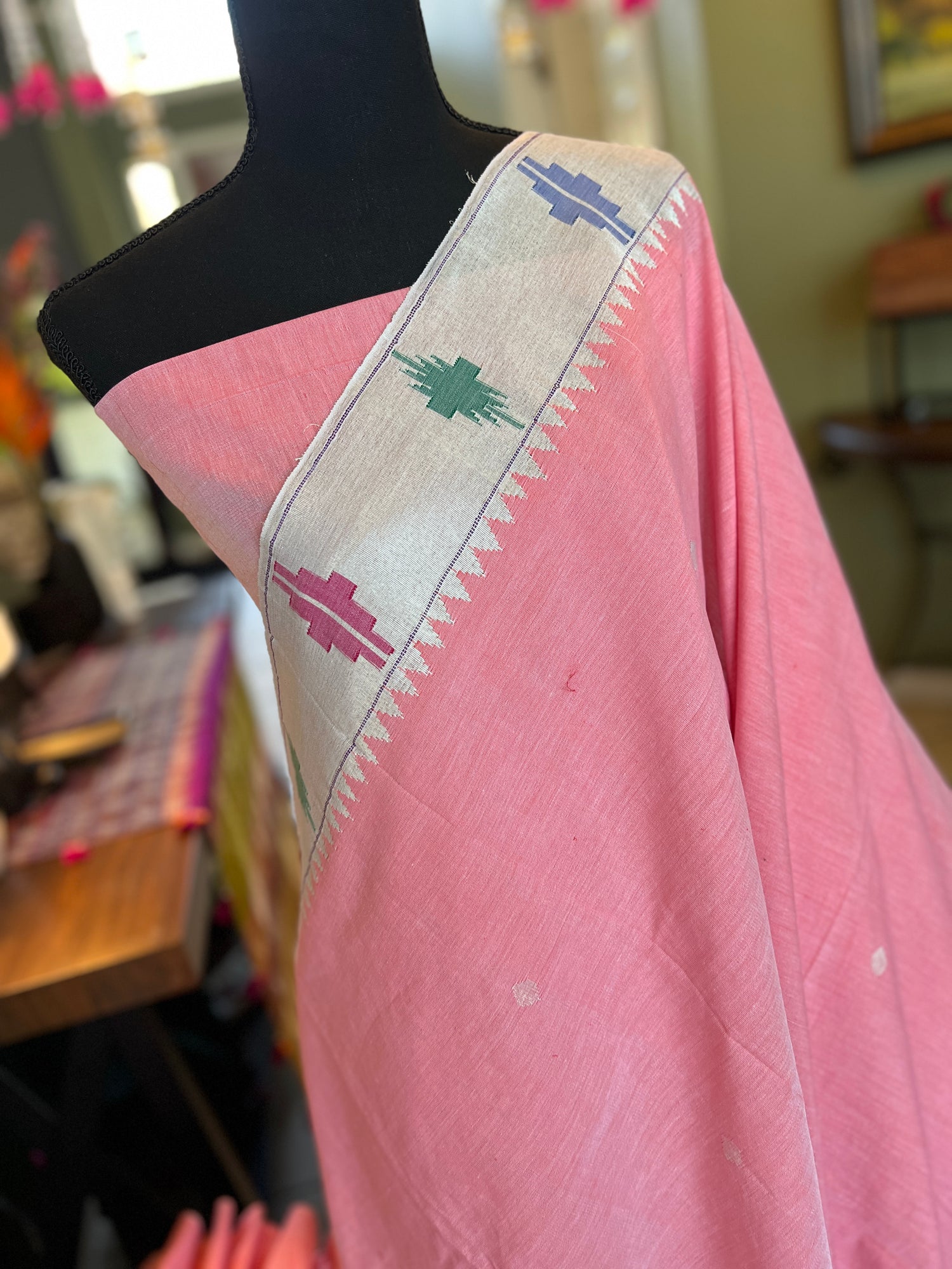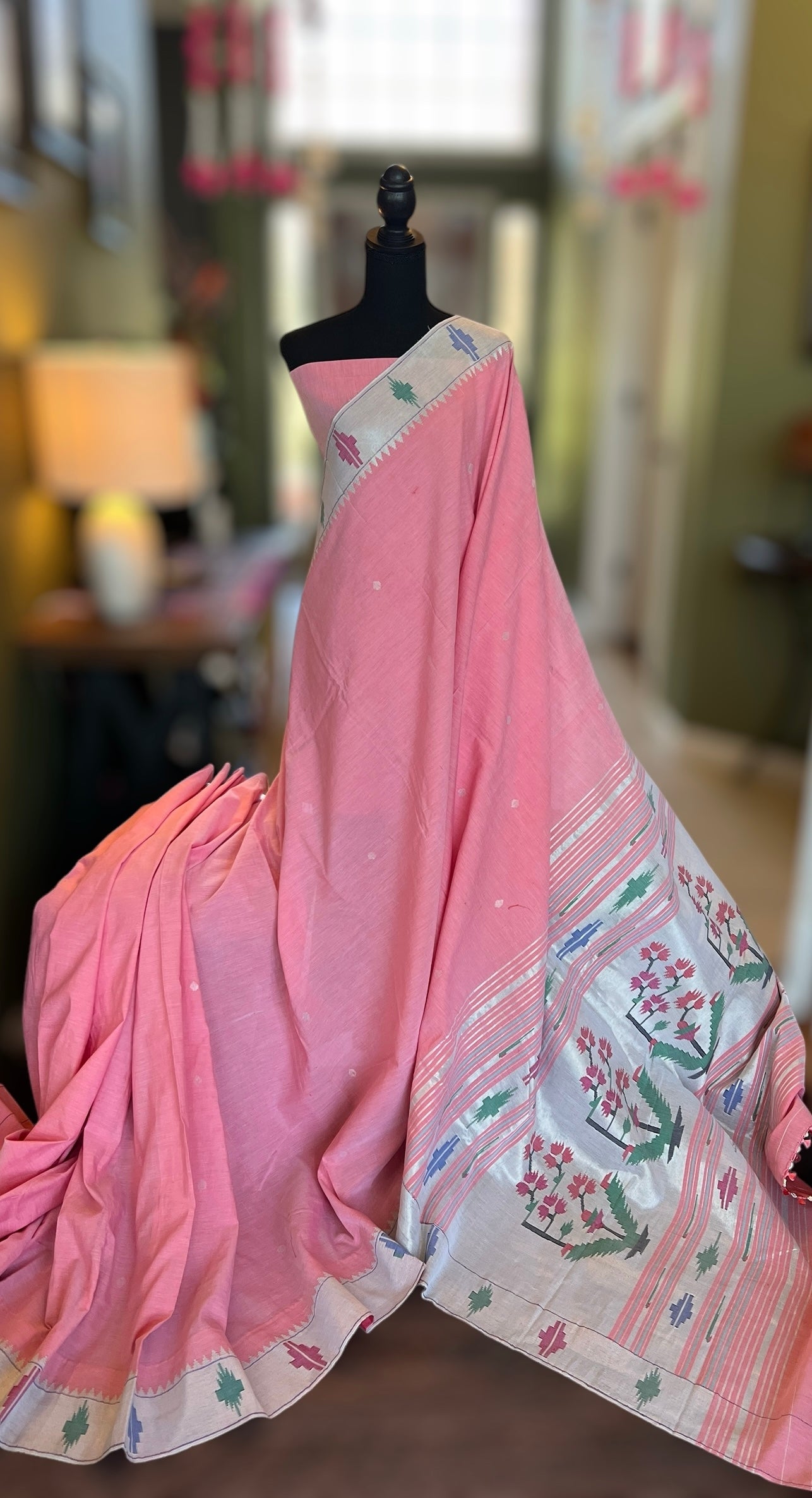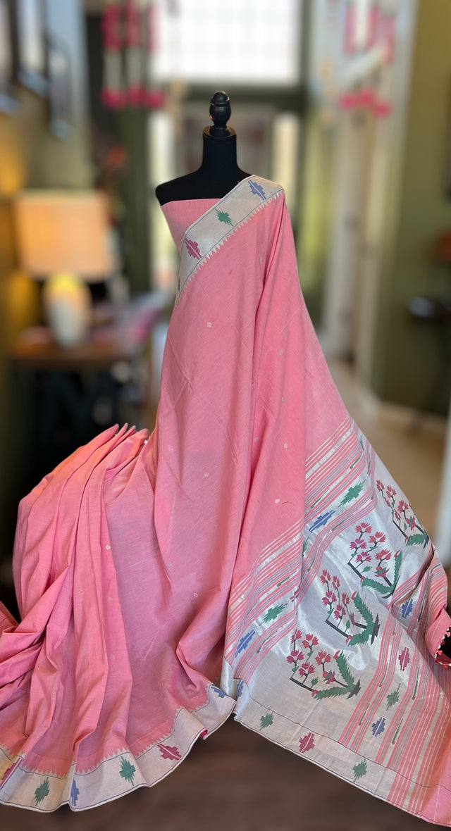 Baby Pink Barav Panja Handloom Pure Cotton Paithani