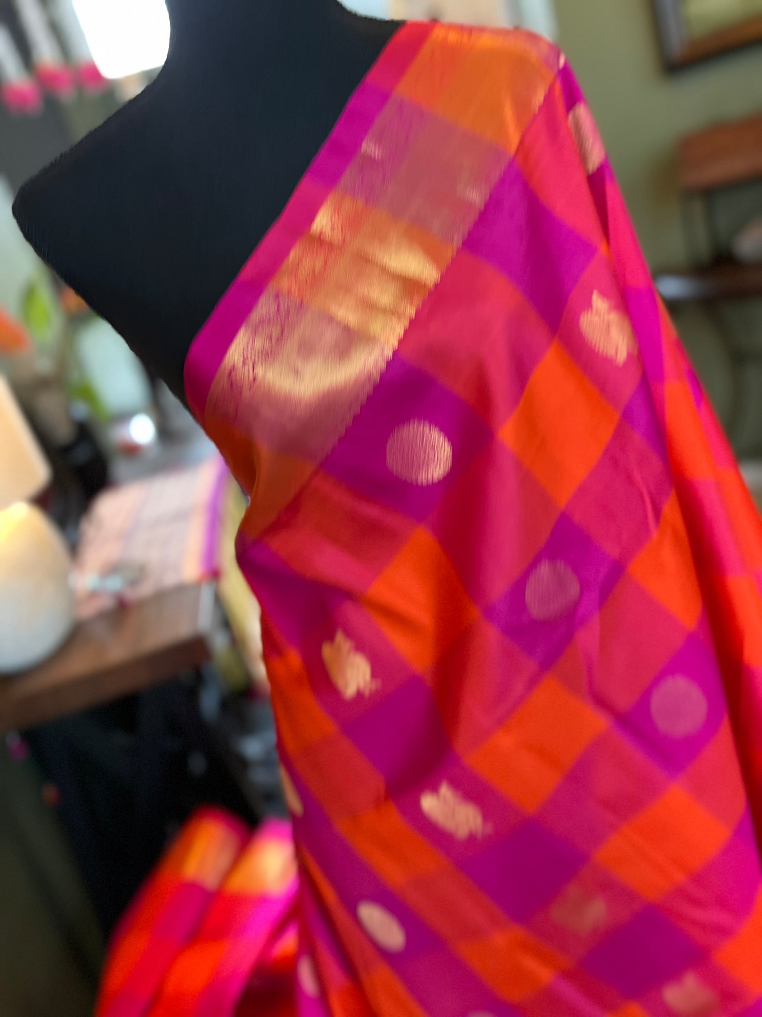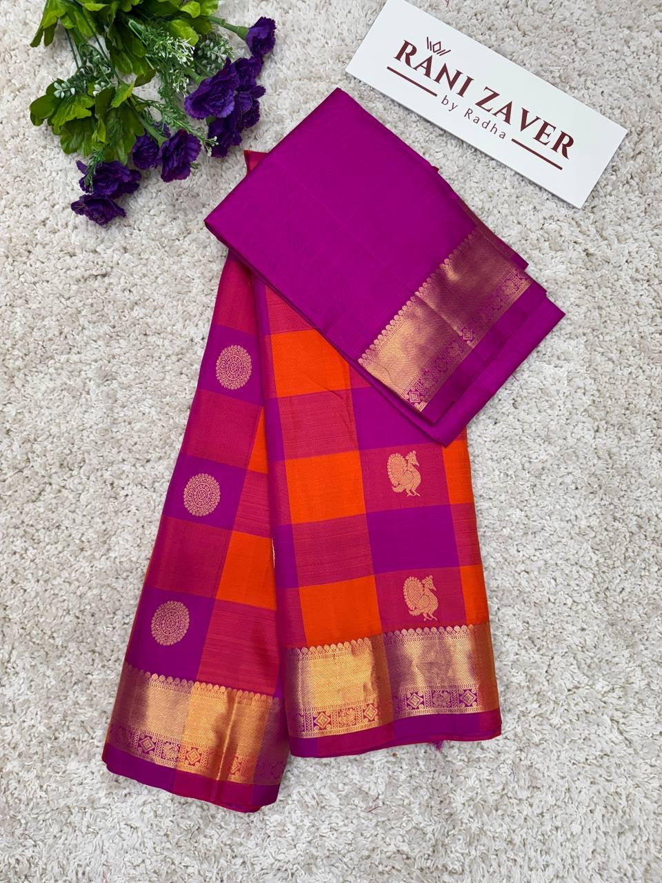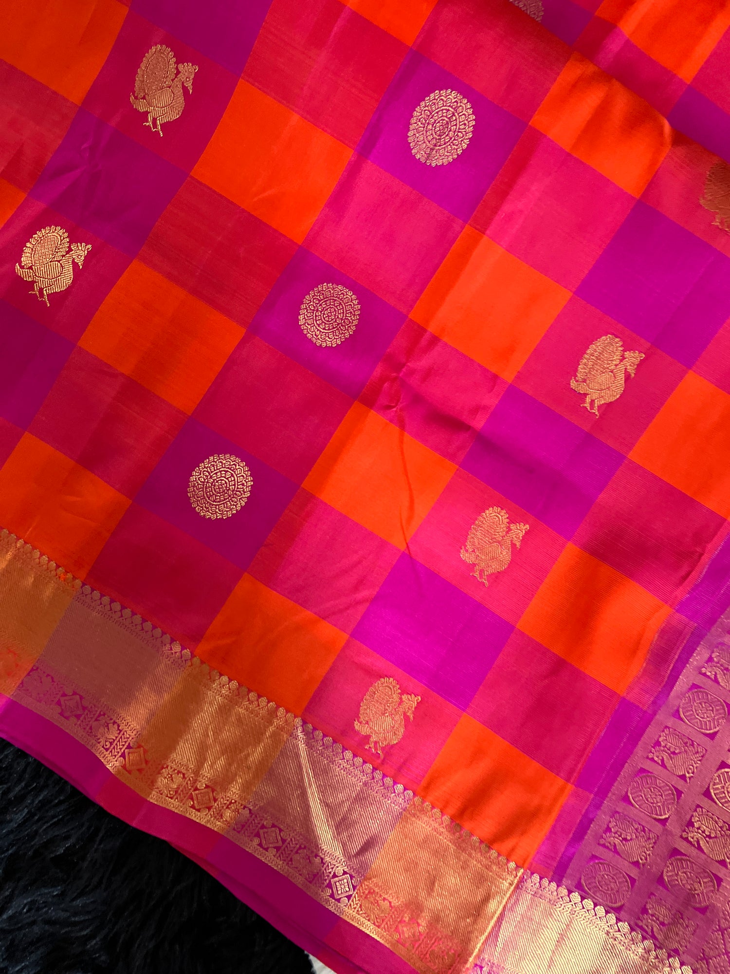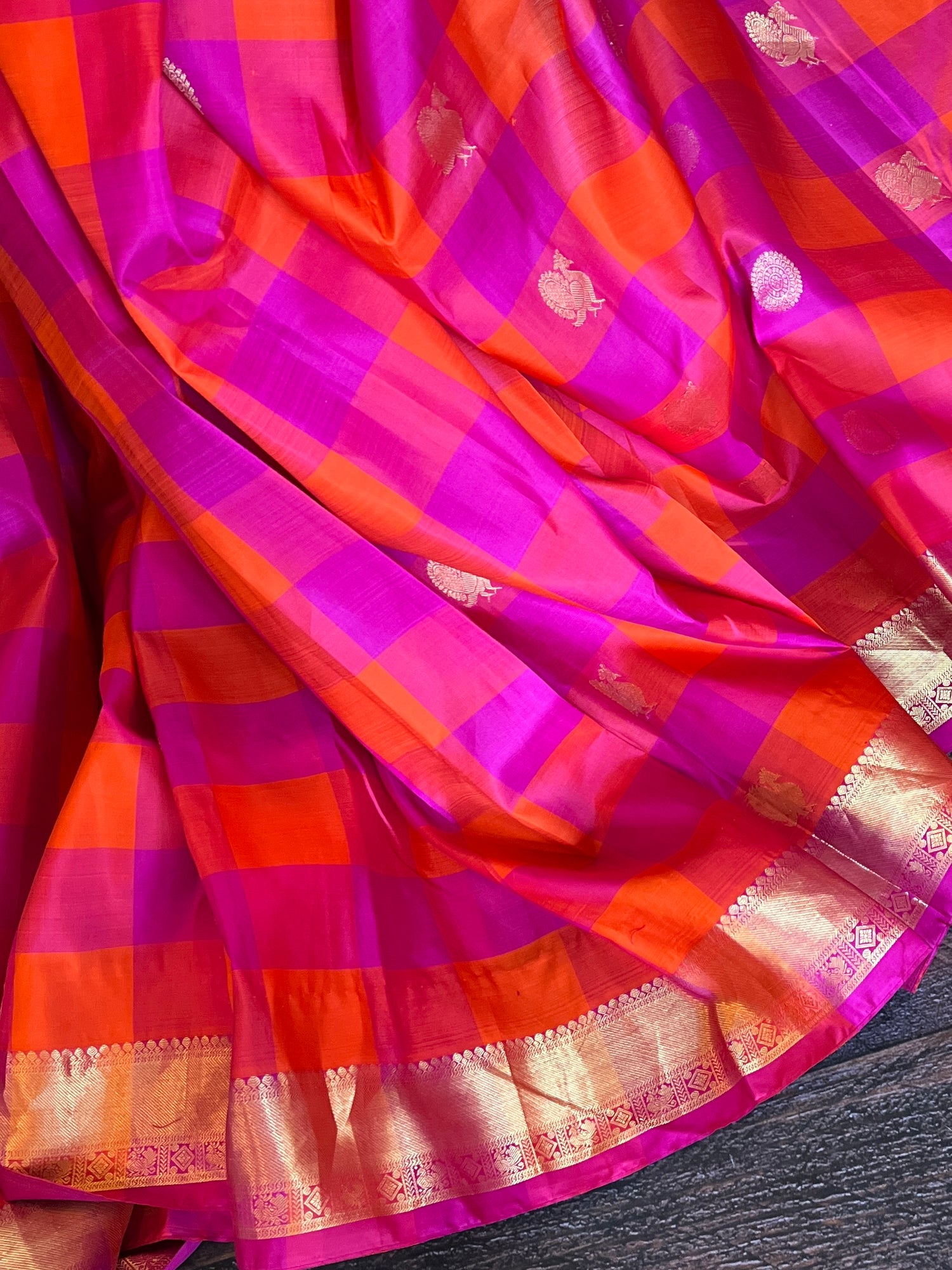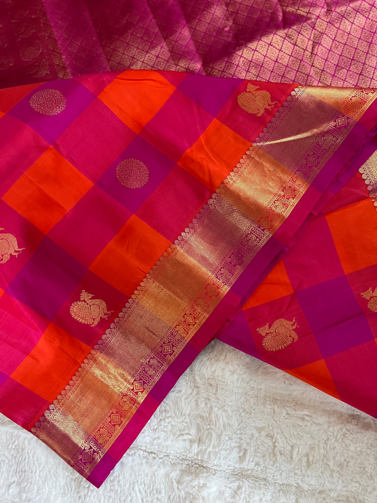 Paalum Pazhamum Checks Korvai Kanchipuram Pure Silk