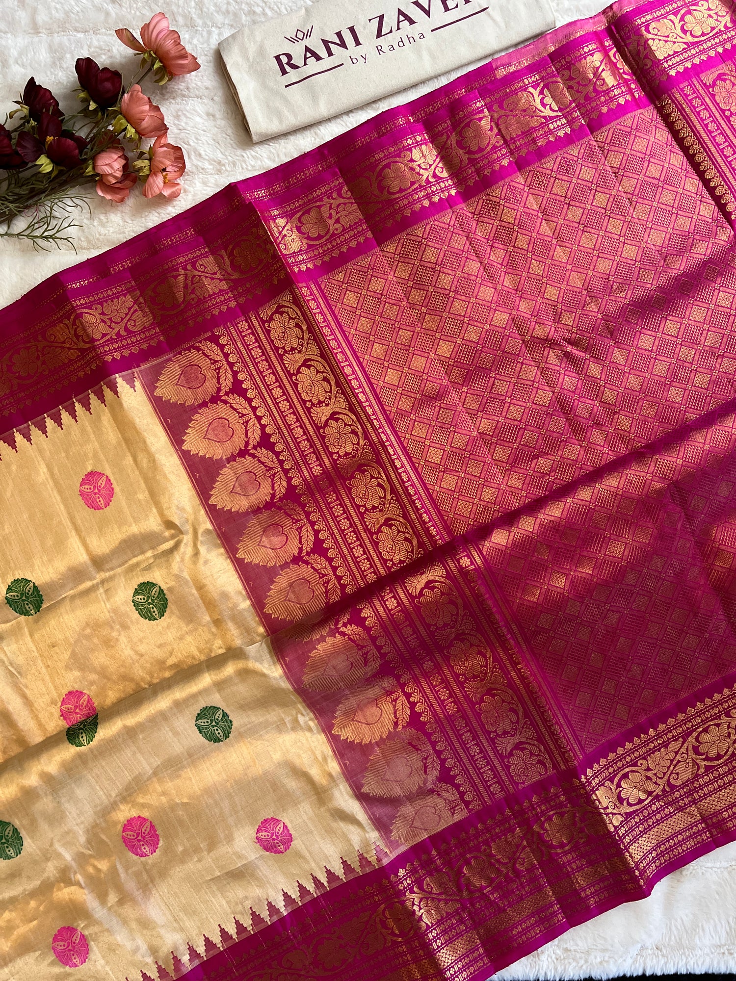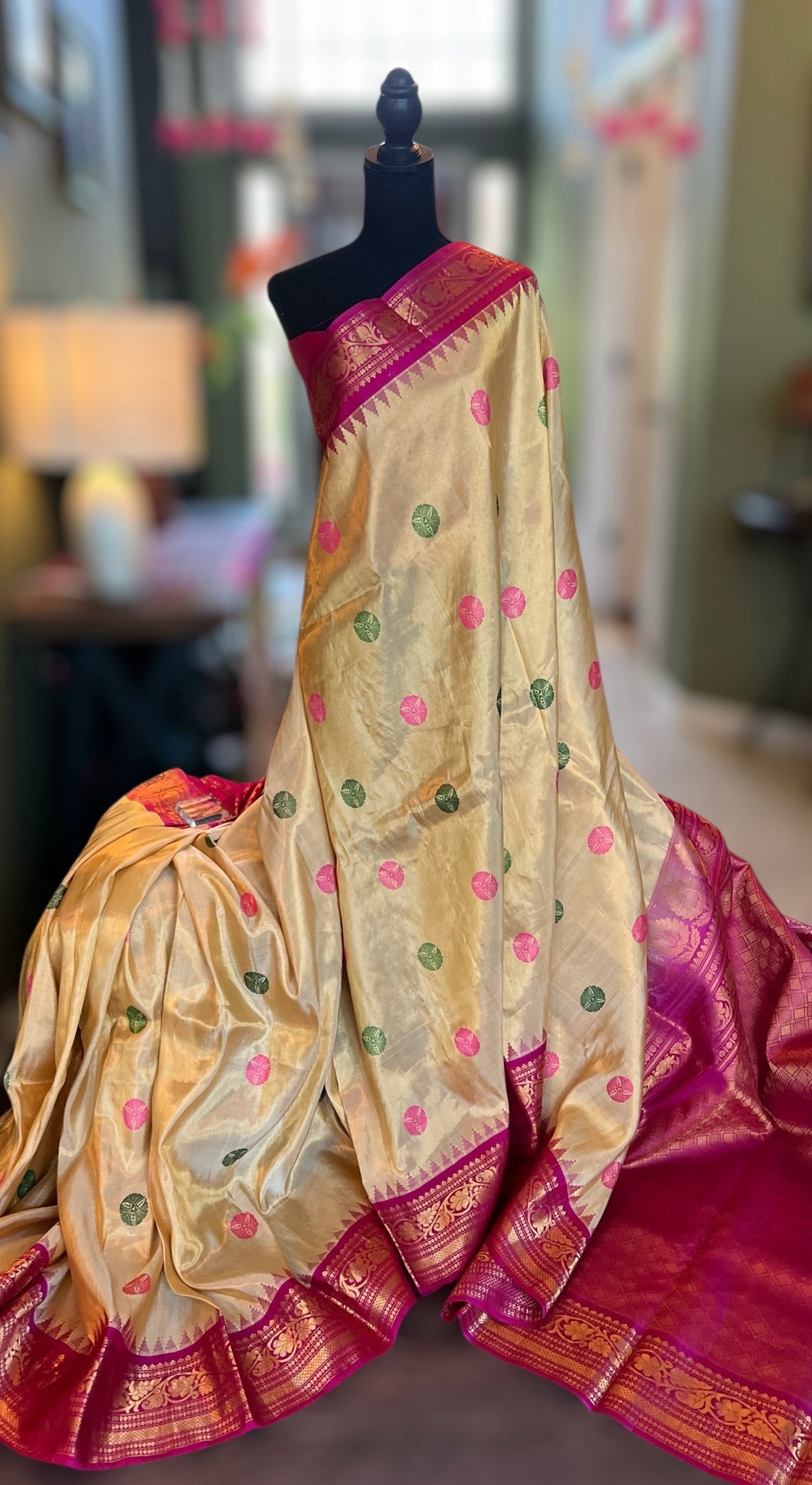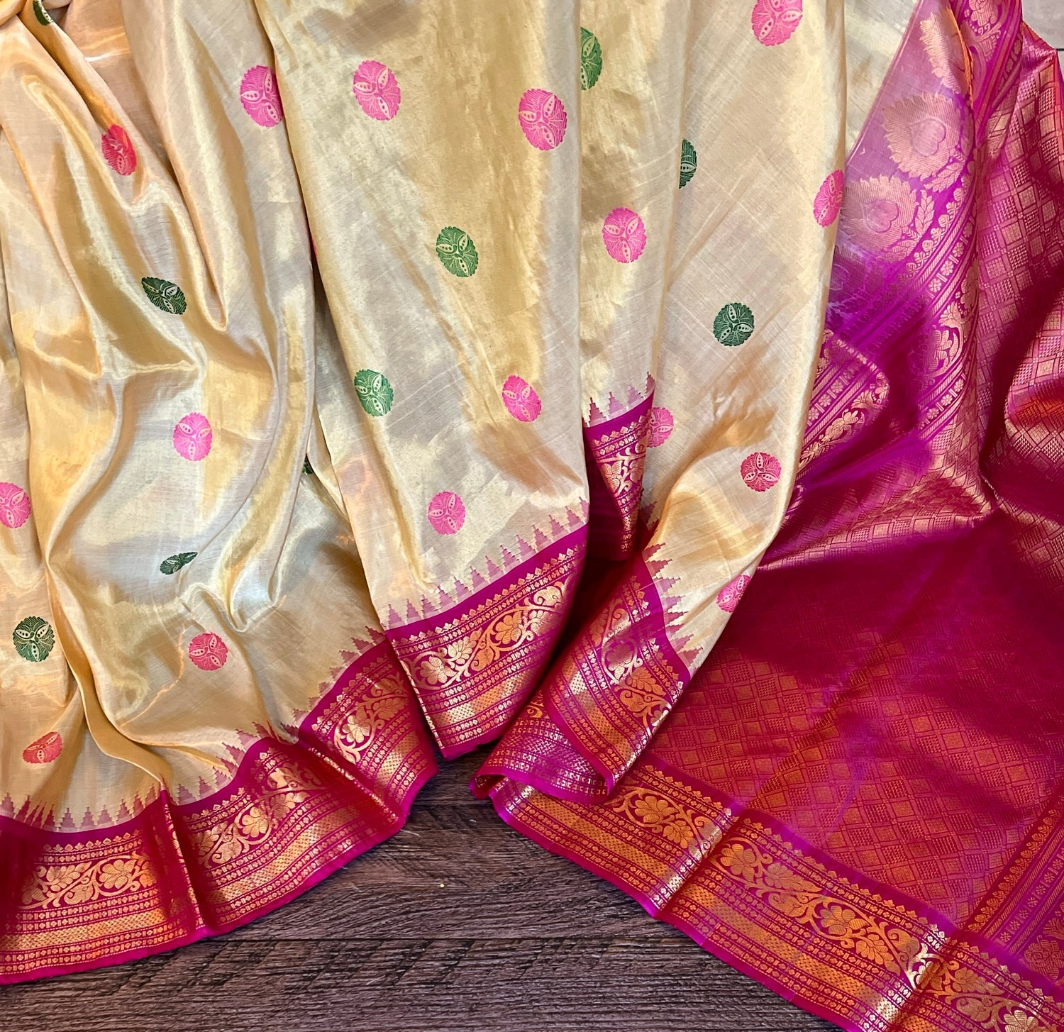 Tissue Gadwal Pure SIlk Handloom is backordered and will ship as soon as it is back in stock.