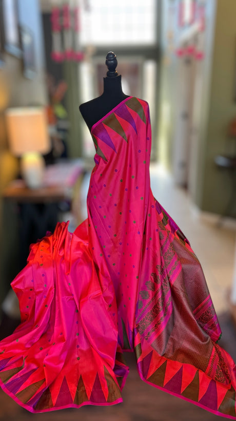 $285.00Unit price /UnavailableHot Pink Multi color Gopuram Border Gadwal Handloom Pure Silk
