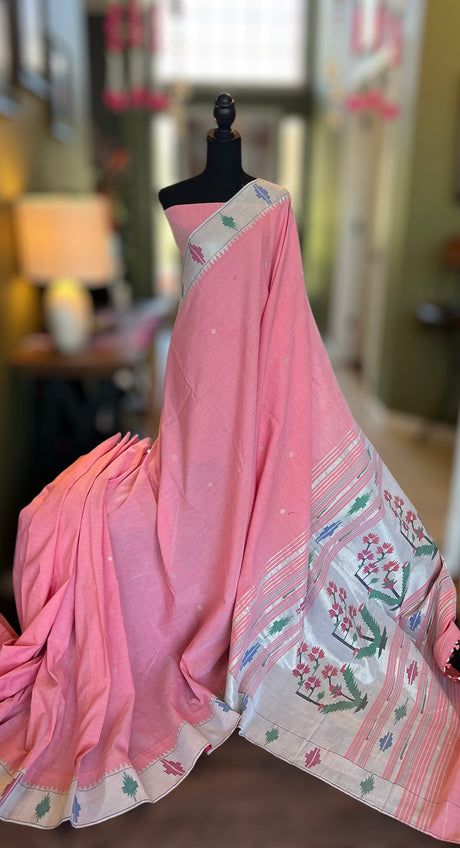 $350.00Unit price /UnavailableBaby Pink Barav Panja Handloom Pure Cotton Paithani
