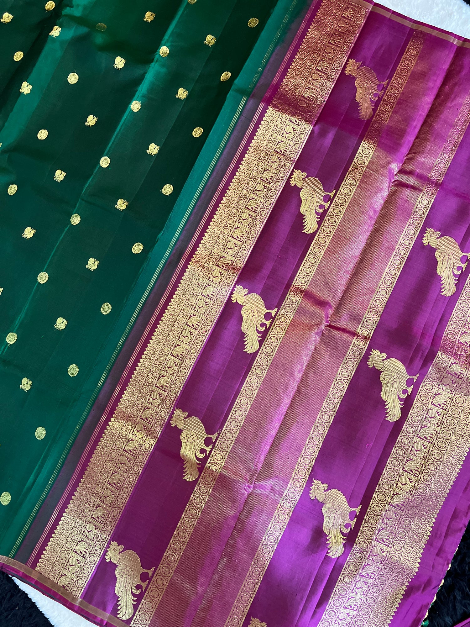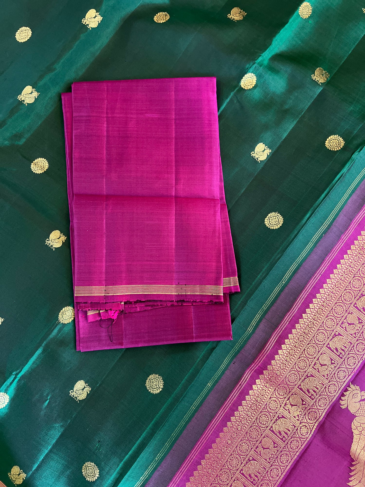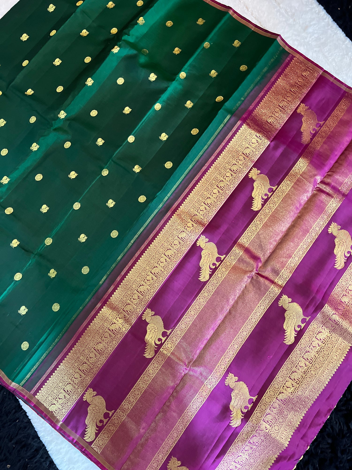 Green Korvai Borderless With Wine Killi Motif Kanchipuram Pure Silk