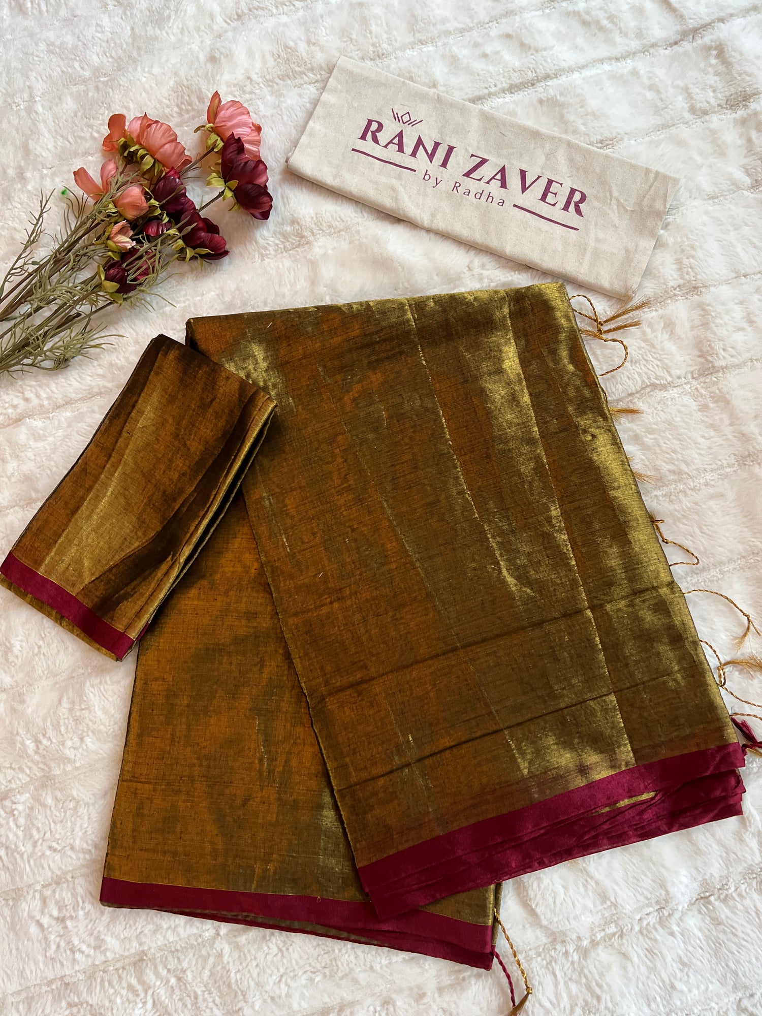 Experience the luxurious touch of Phulia Tissue Linen, a lightweight saree designed for comfort and elegance. With its great shine, this delicate fabric exudes sophistication. Keep it looking flawless with our care instructions - avoid high heat and use a Poly or lower iron setting if required.