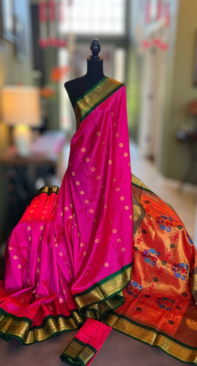 Pink green Kadiyal Maharani Paithani Handloom Pure Silk is backordered and will ship as soon as it is back in stock.
