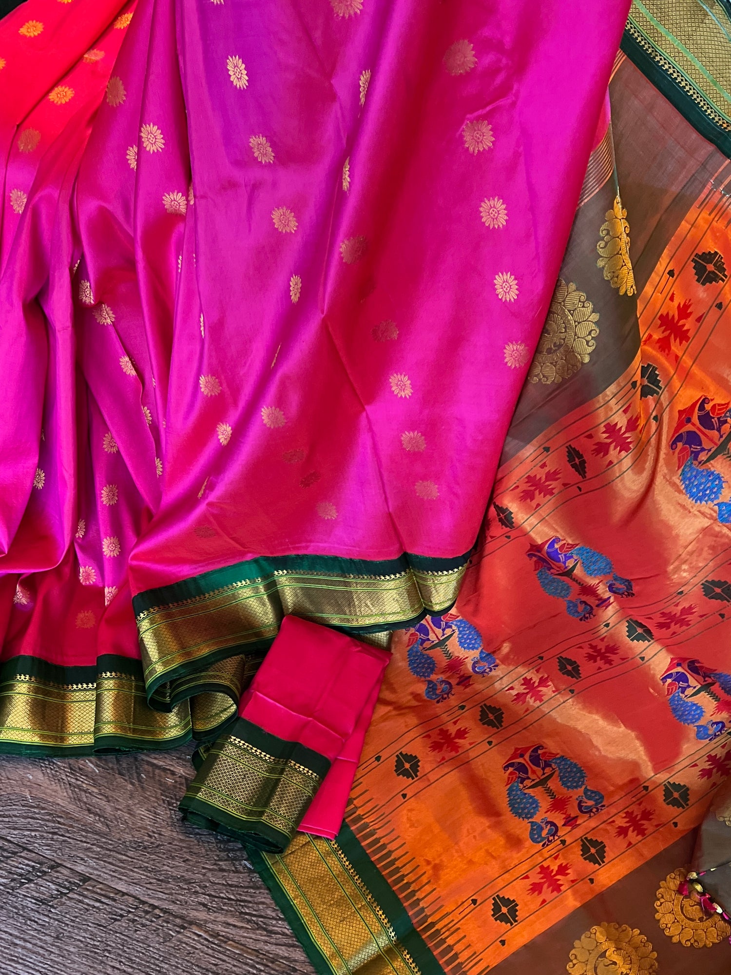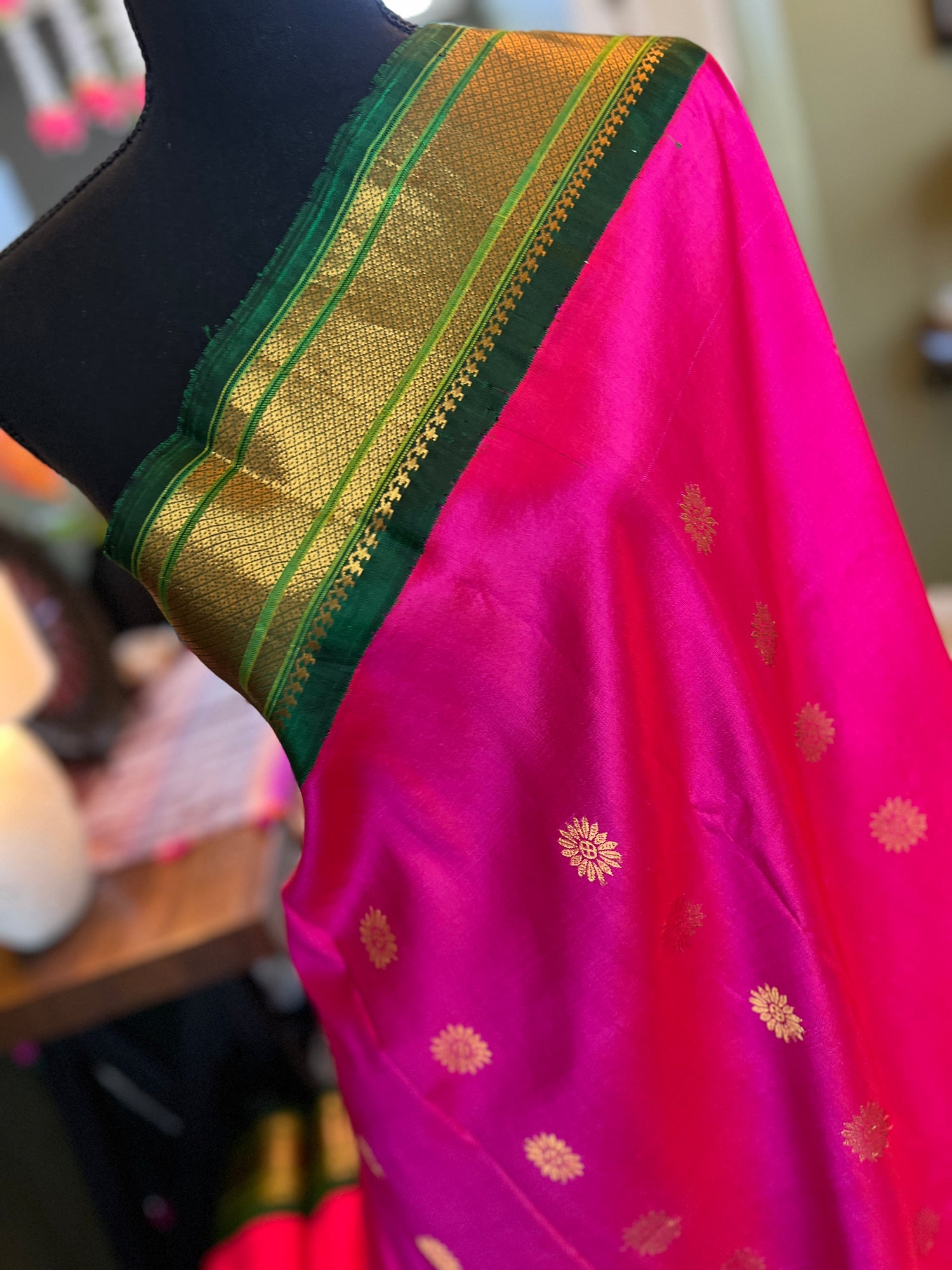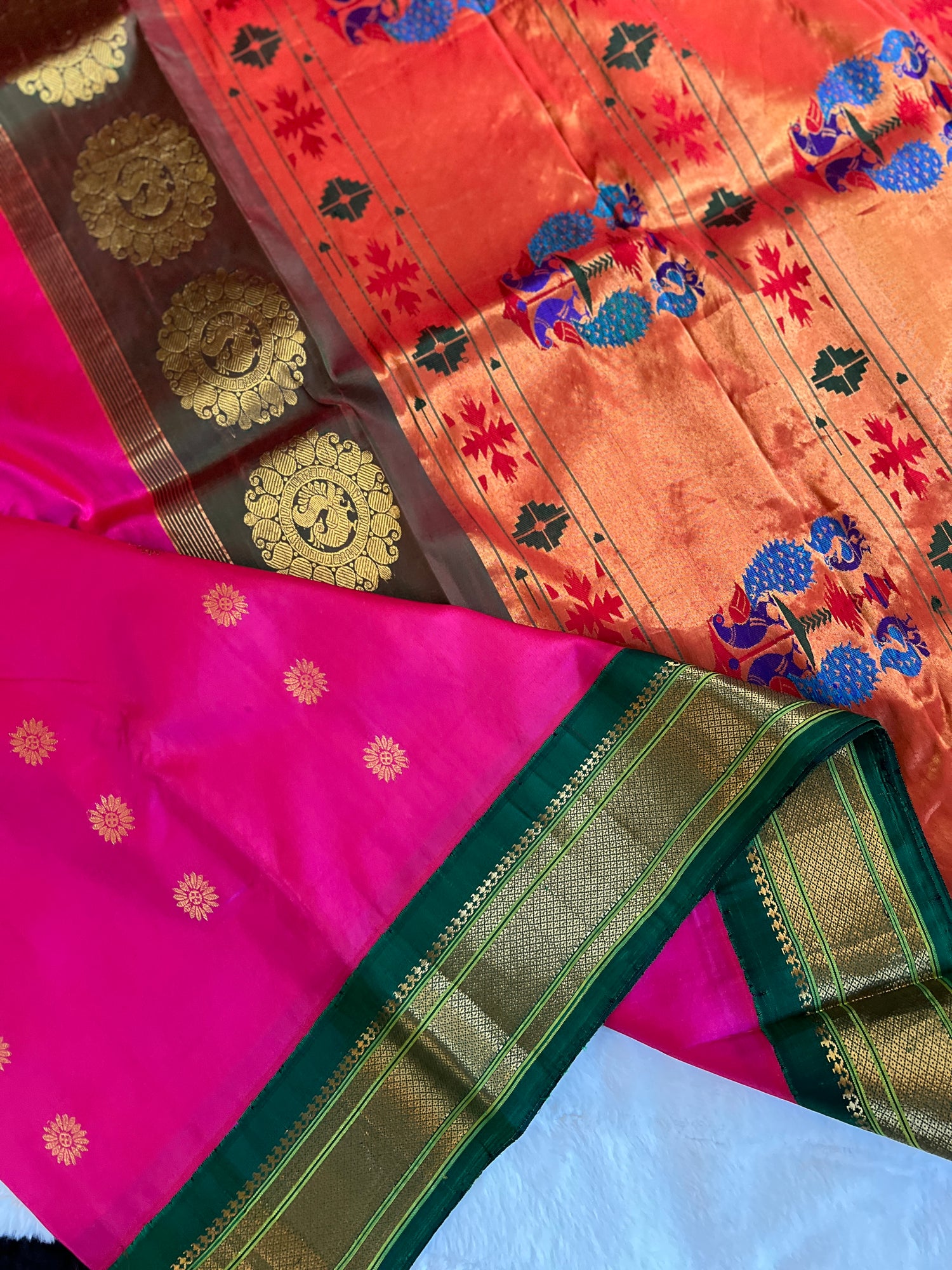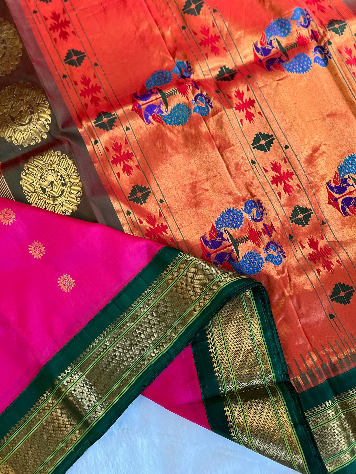 Pink green Kadiyal Maharani Paithani Handloom Pure Silk
