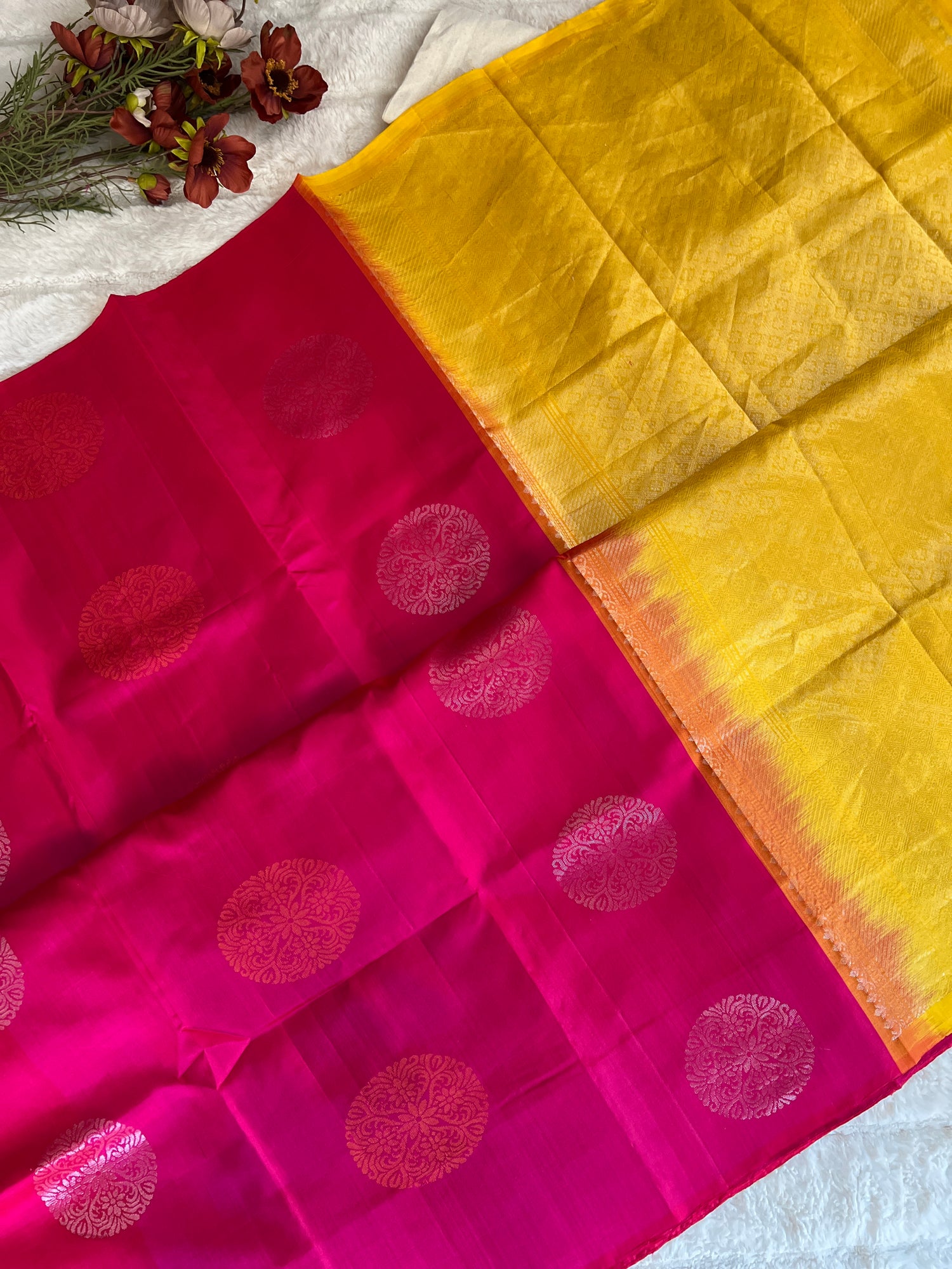 Rani Pink Yellow Kanchi Soft SIlk borderless