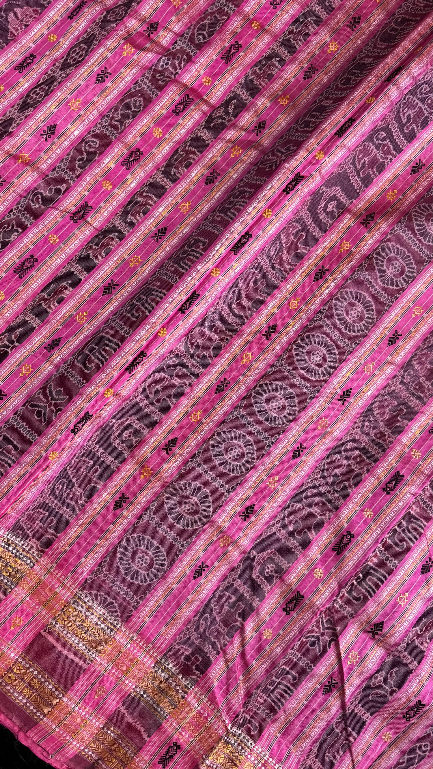 Sambalpuri Double Ikkat Hazaar butti Royal Blue Hot Pink. Pure Handloom Silk Saree with Rudra Fish Tortoise Motifs