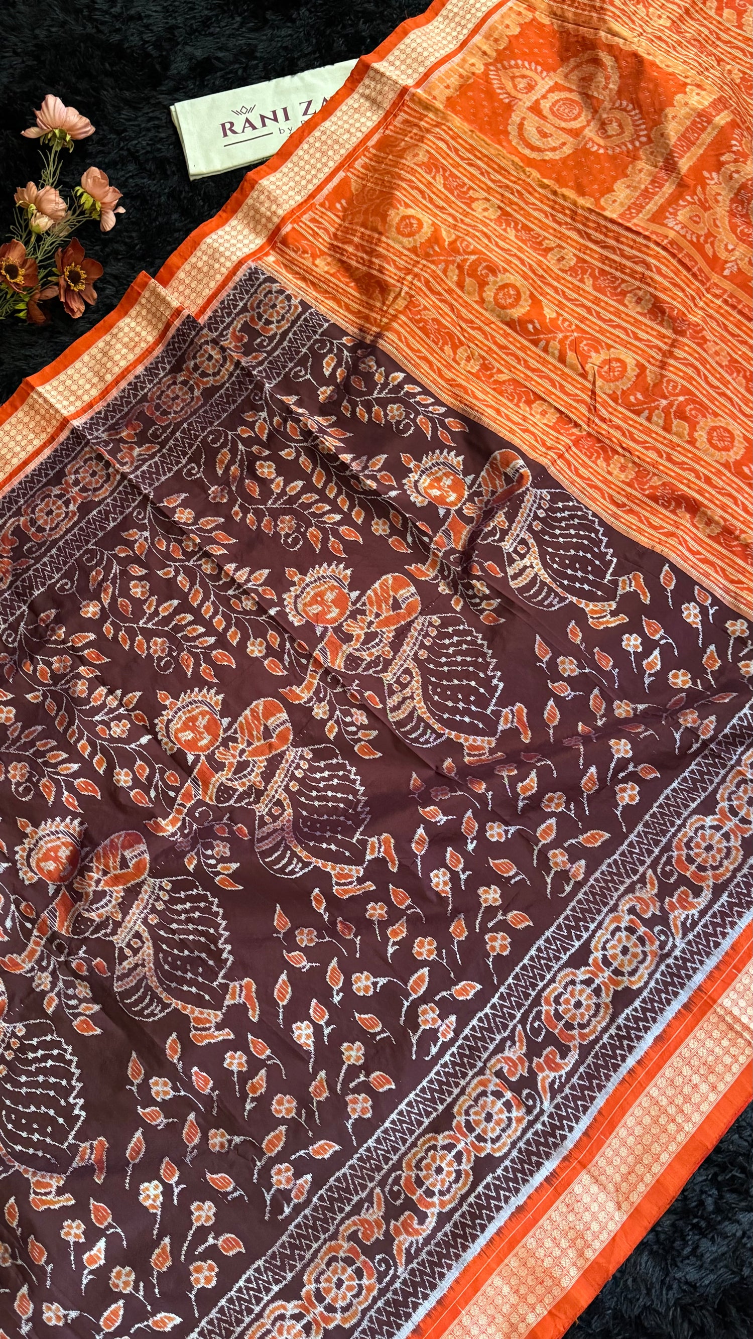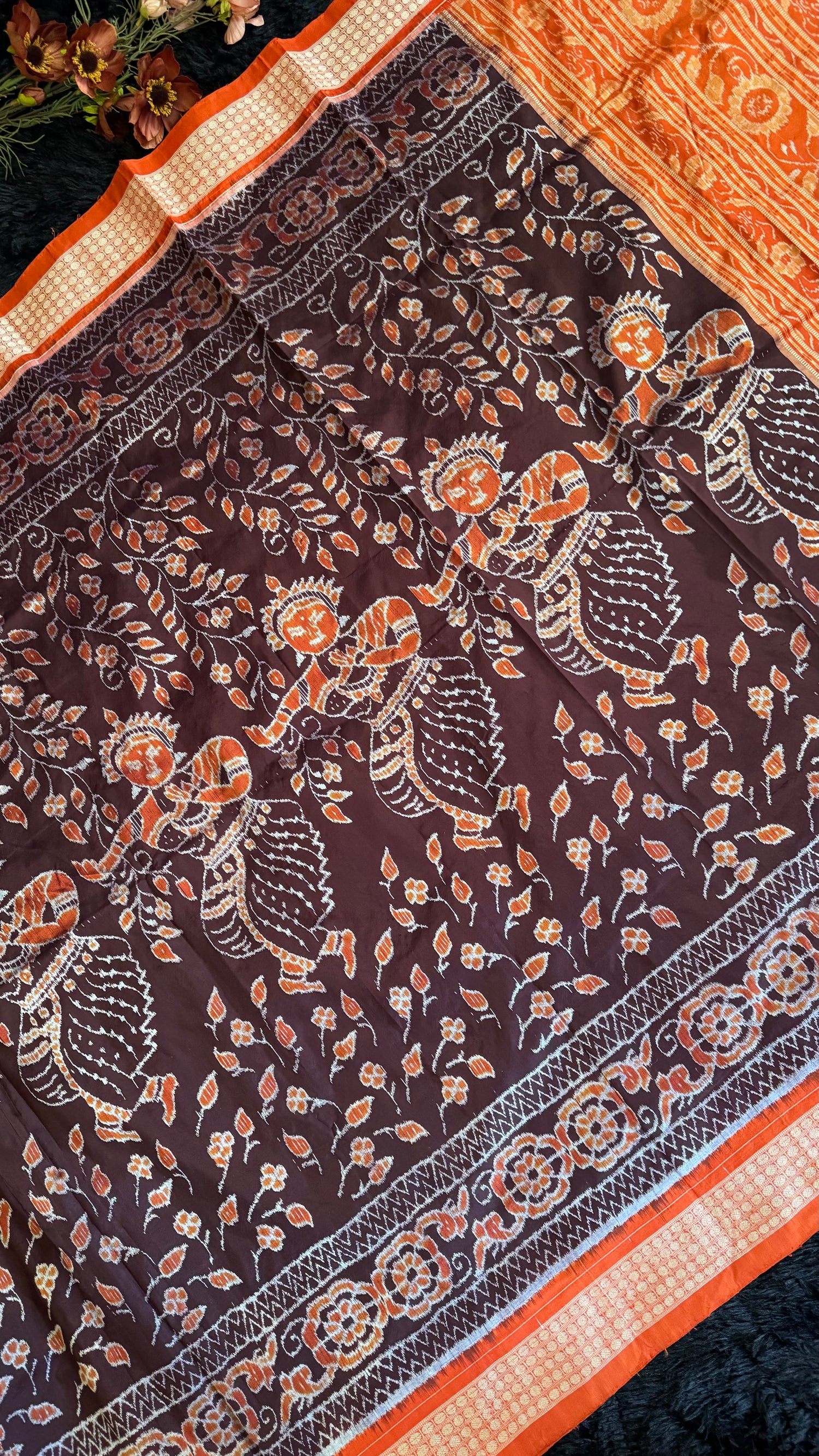 Sambalpuri Ikkat Double Ikkat Dancers Design. Handloom Pure Silk saree.