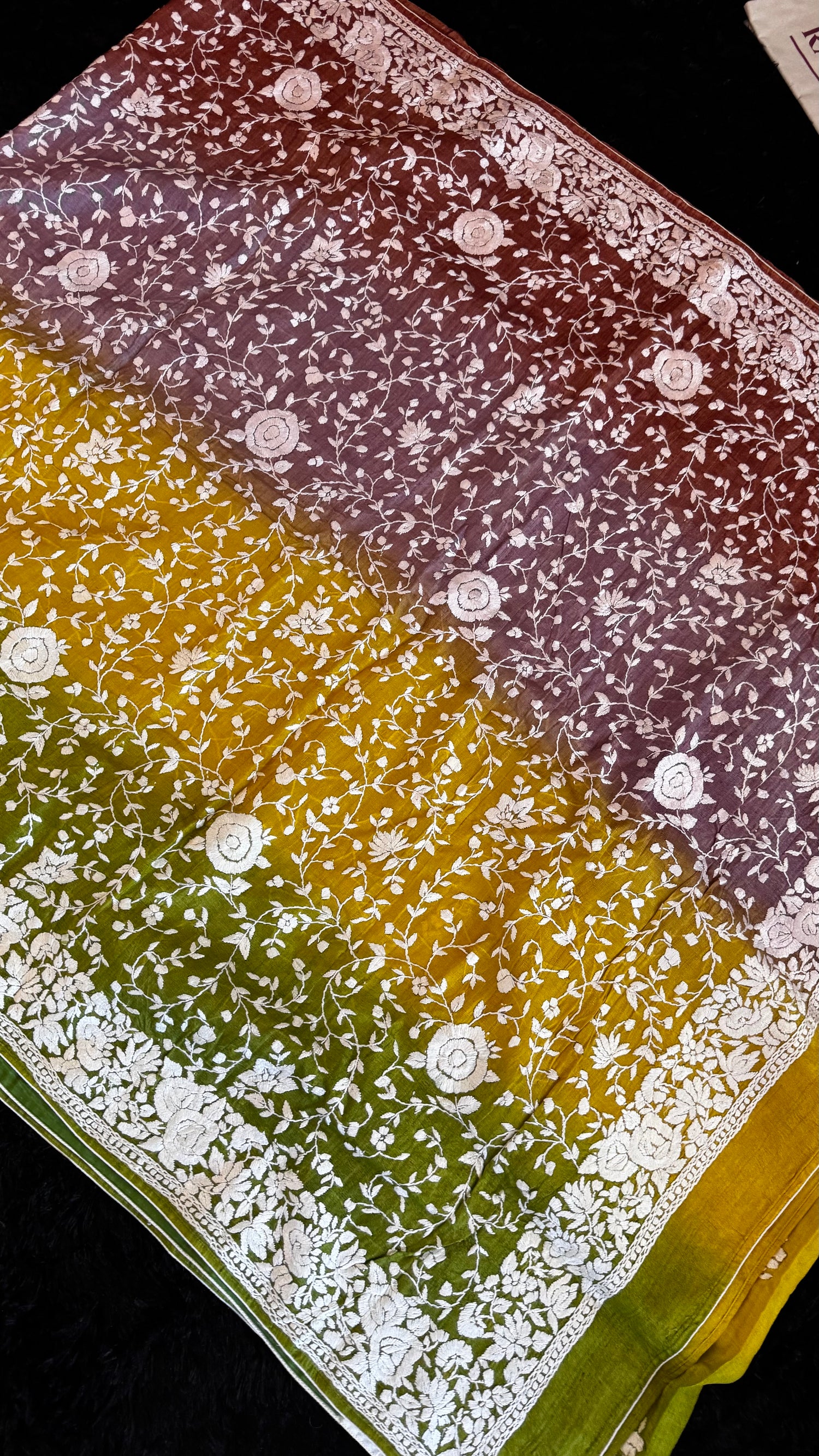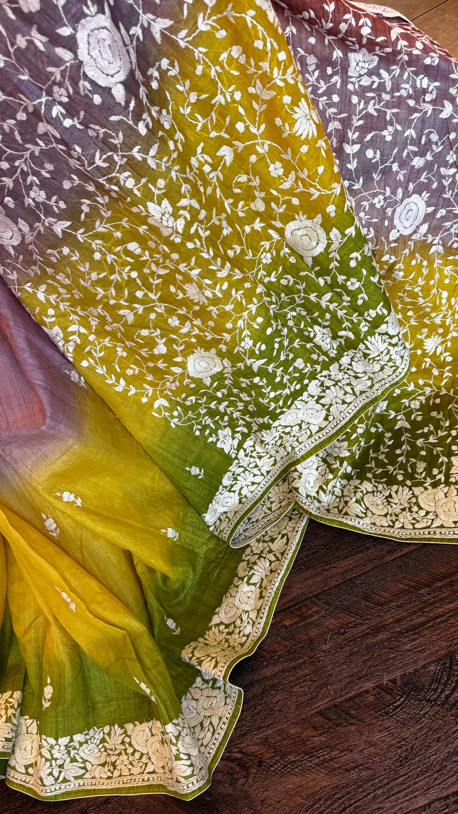 Shaded Parsi Embroidered Gachi Tussar Silk