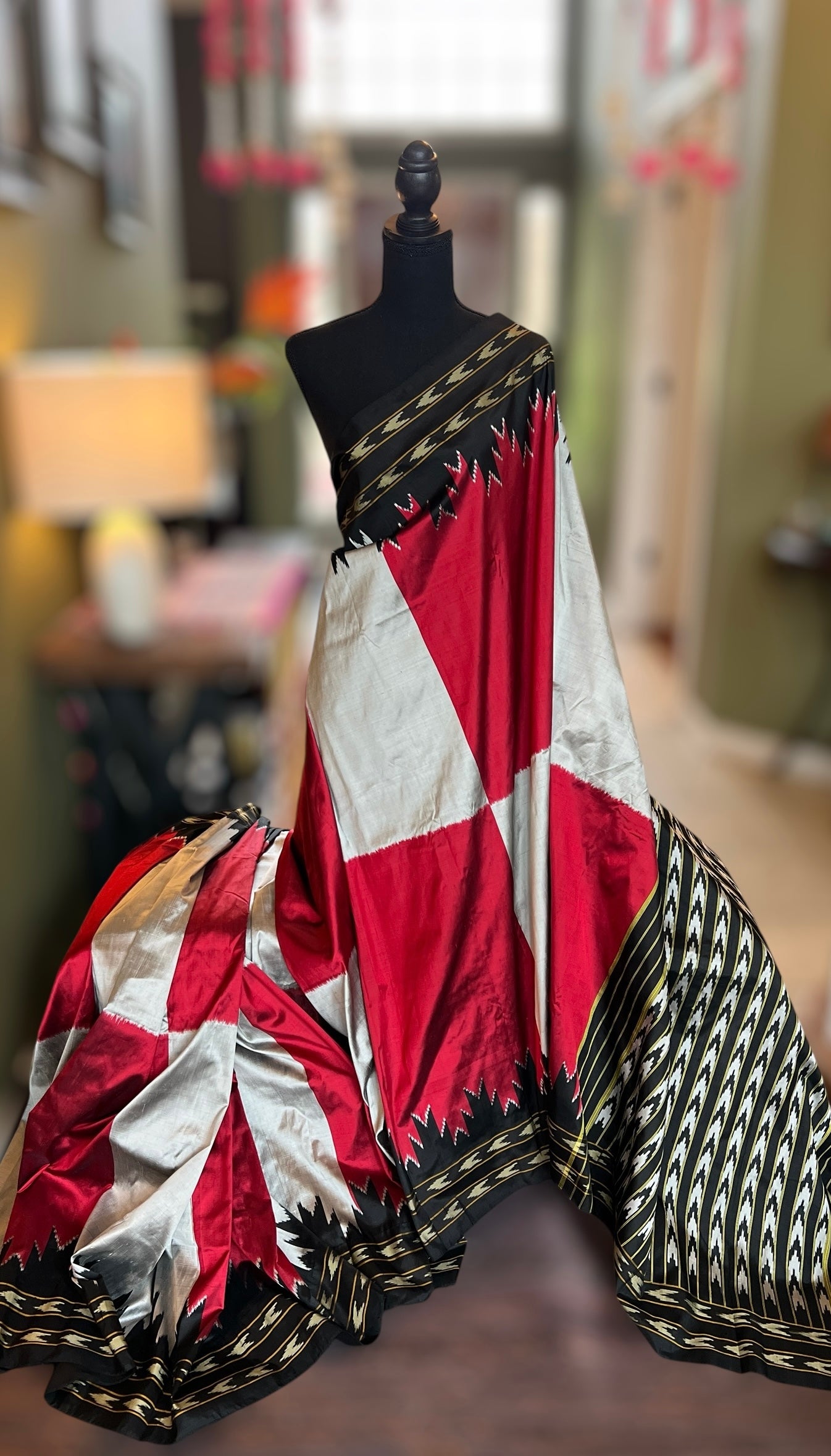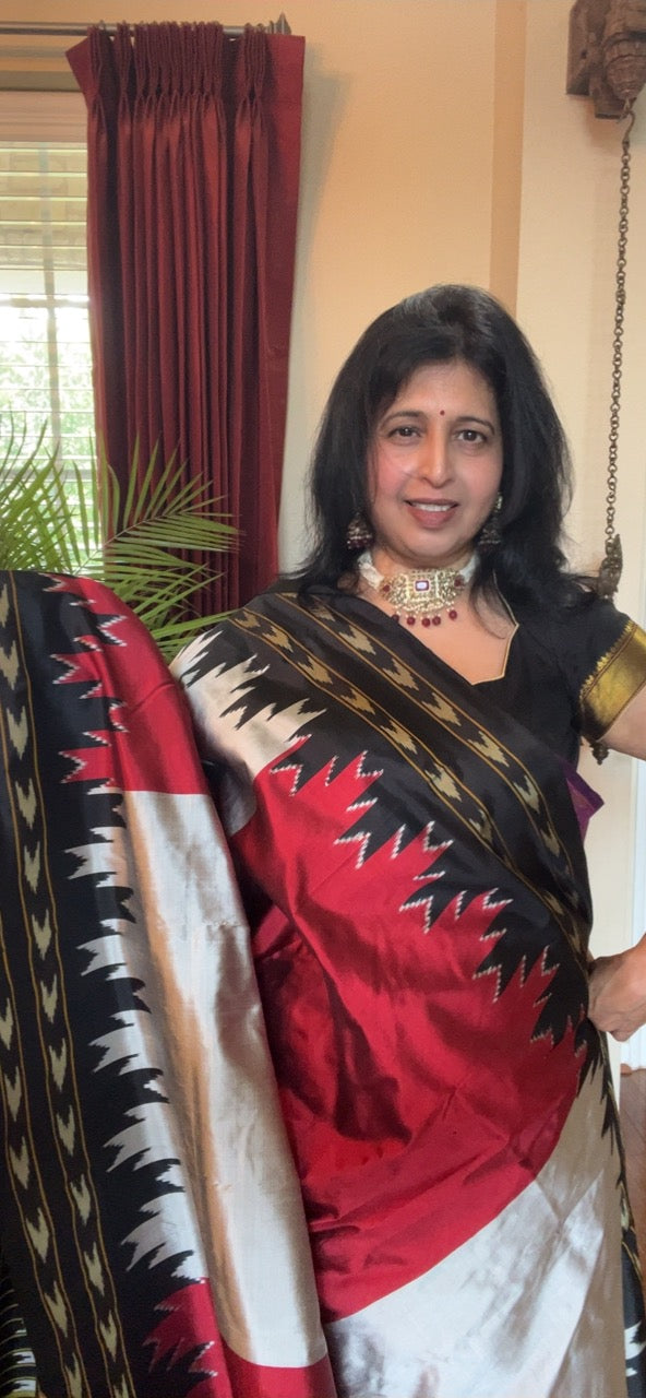 Silver Maroon Large Squares Single Ikkat Handloom Pure Silk is backordered and will ship as soon as it is back in stock.