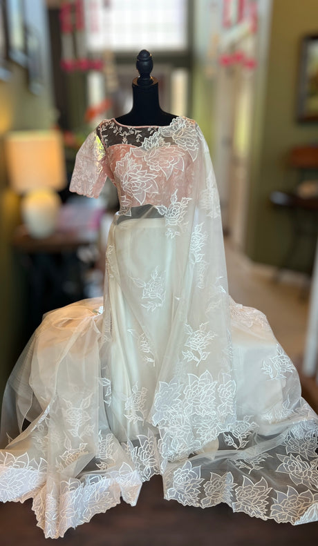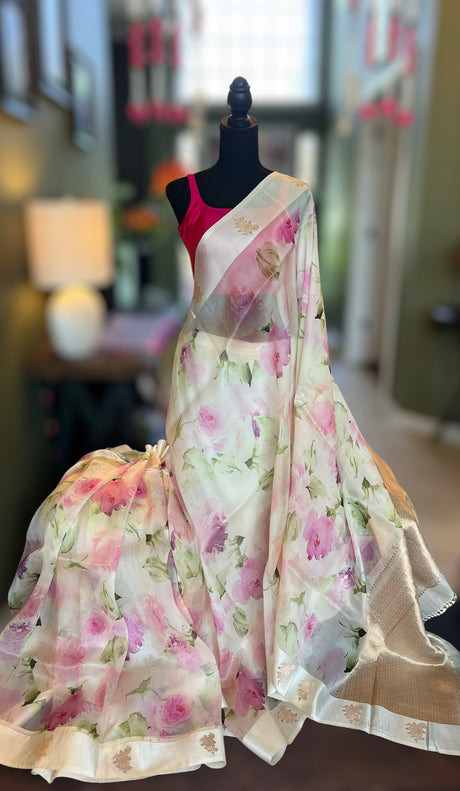 Ivory Floral Raw Mango Design Organza
