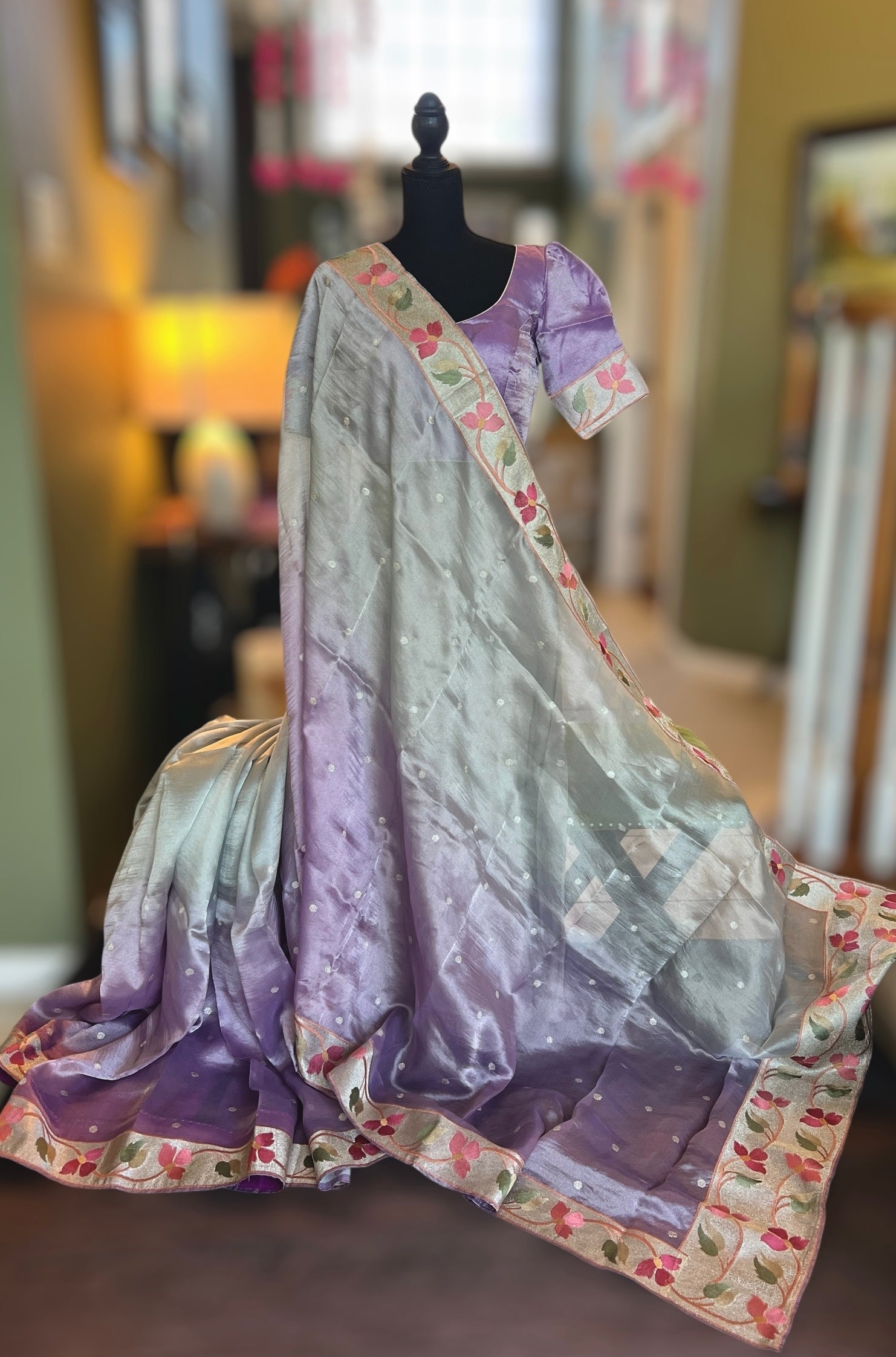 Lavender shaded Tissue Organza Silk With Pre-Stitched Blouse 74 is backordered and will ship as soon as it is back in stock.