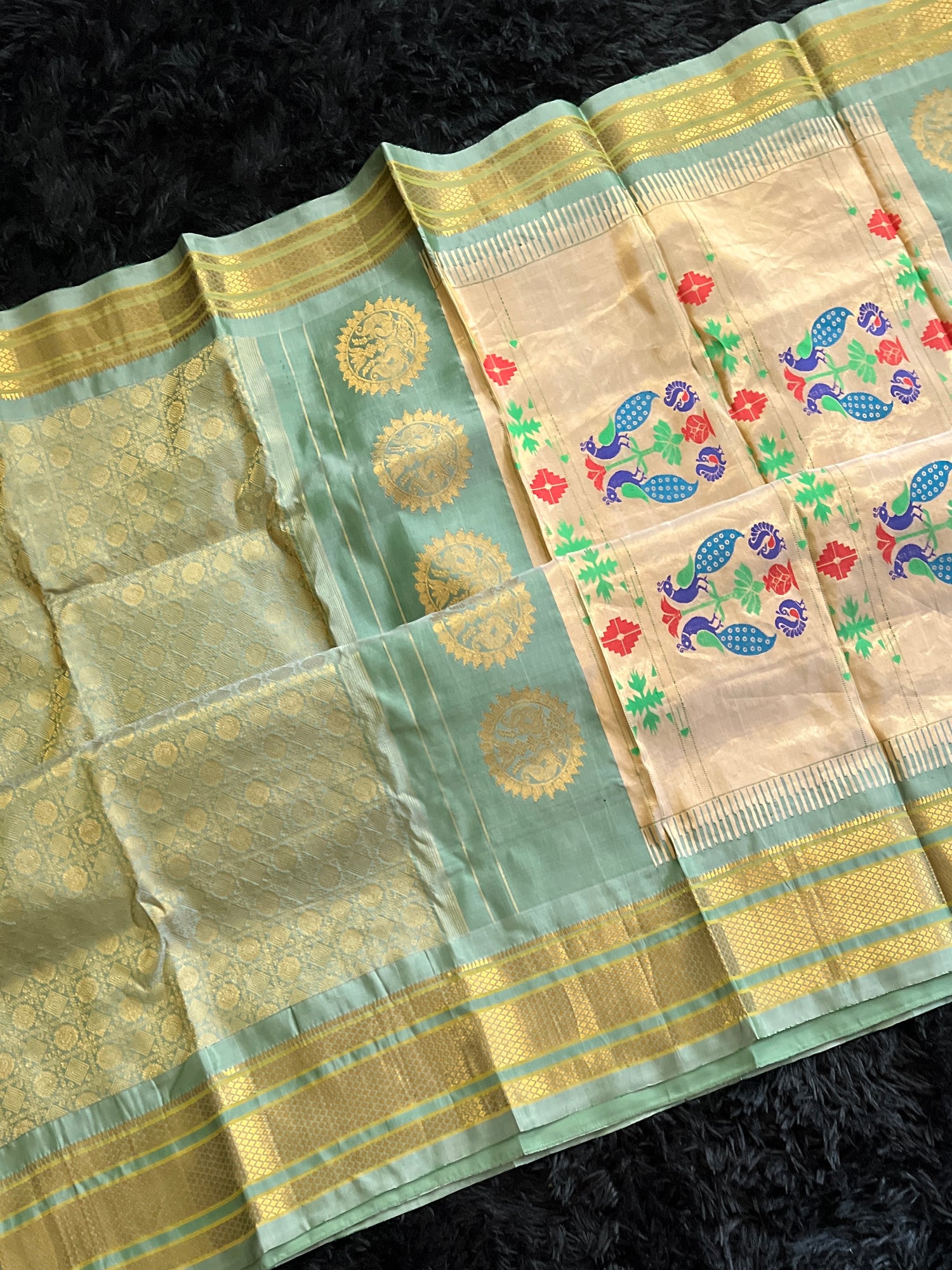 Brocade Maharani Paithani Handloom Pure silk With Stitched Blouse