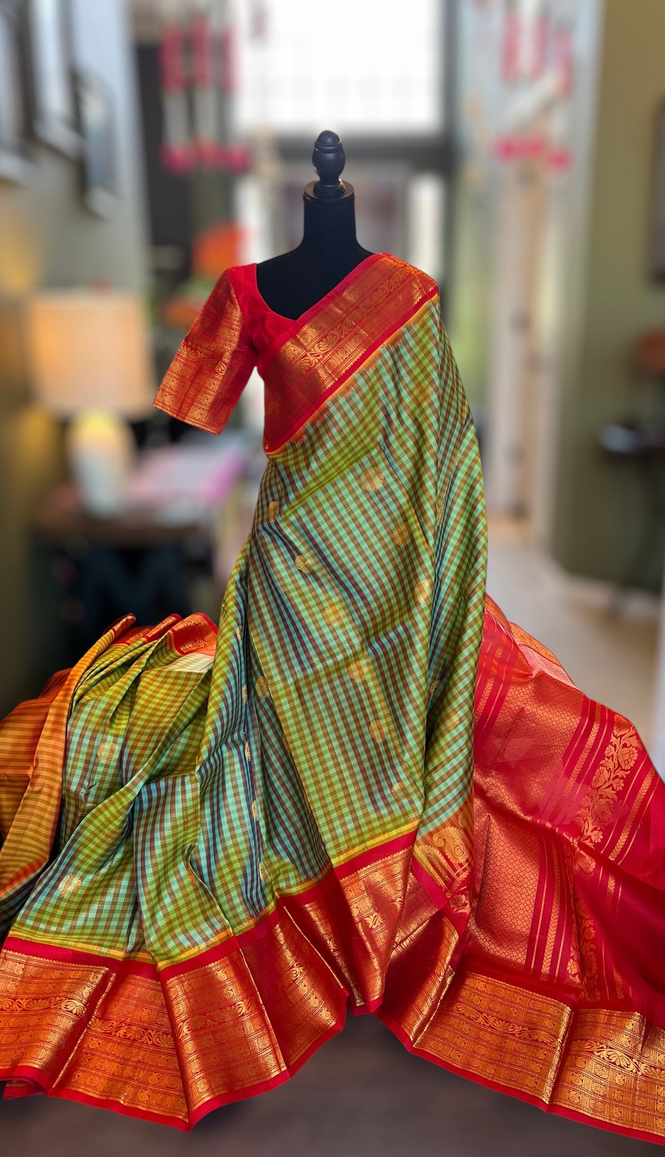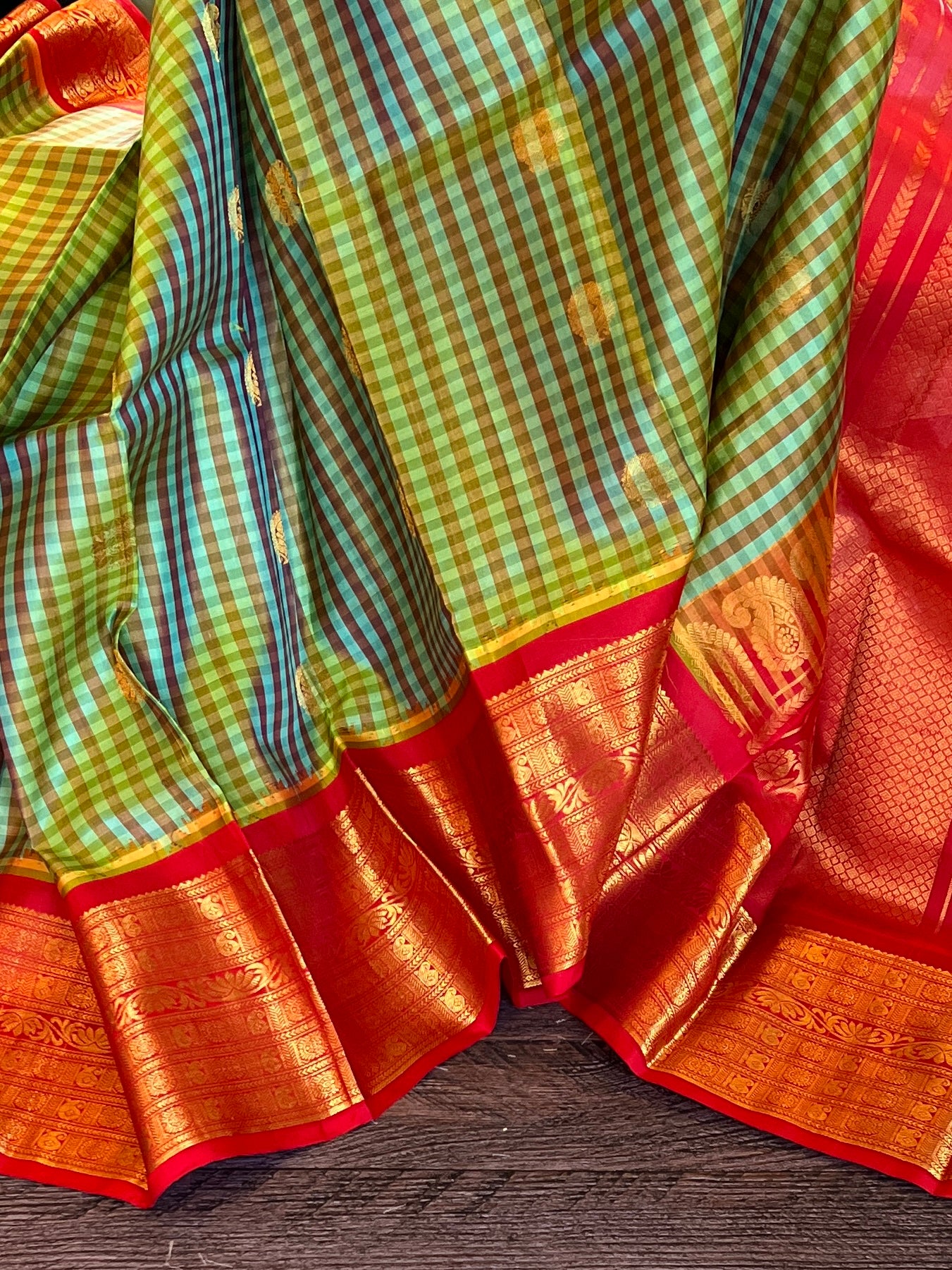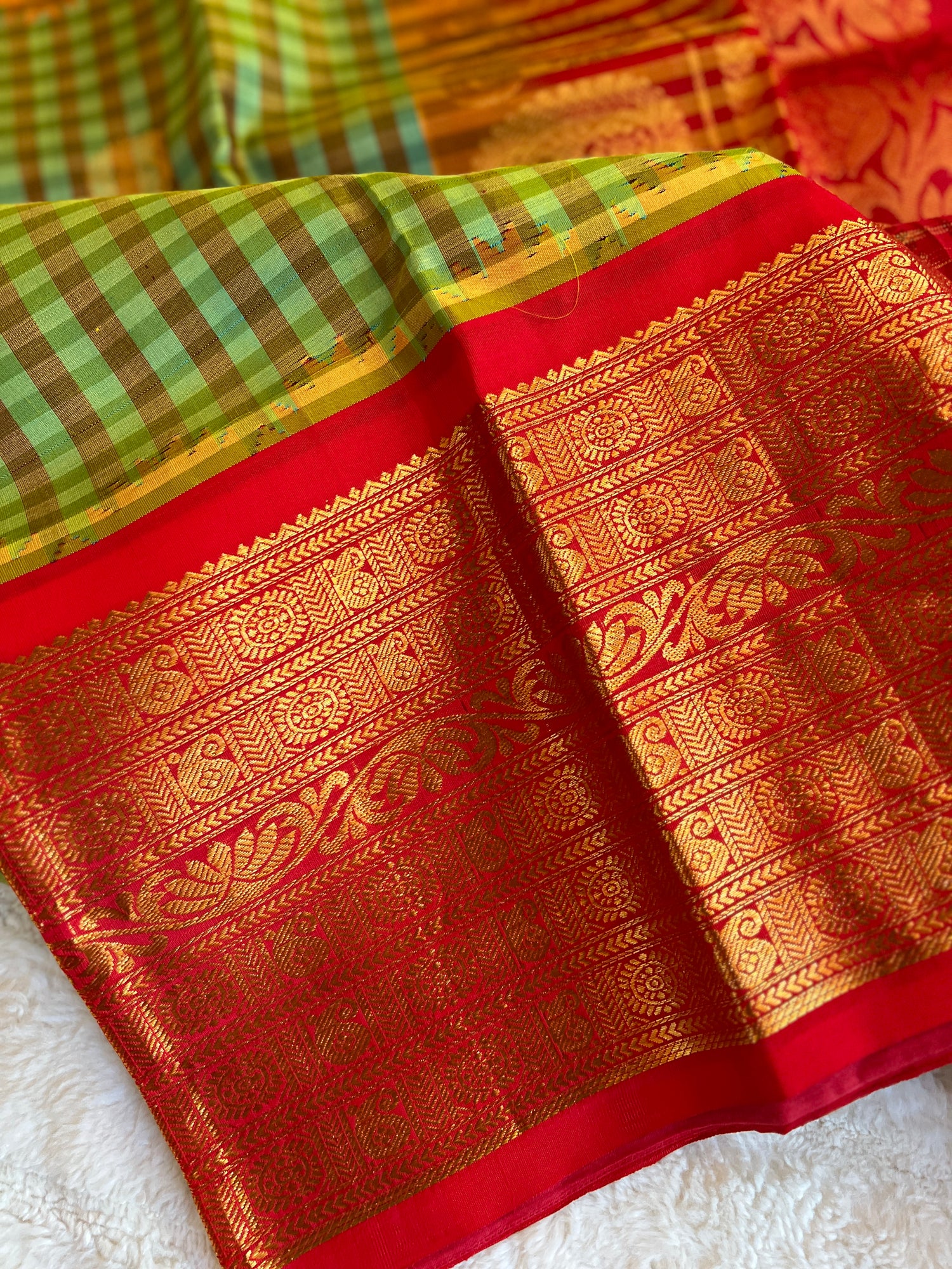 Checks Long Border Kanchi Gadwal Handloom Pure Silk