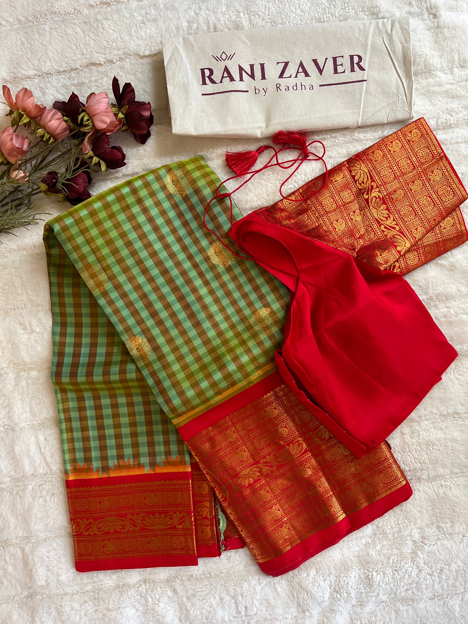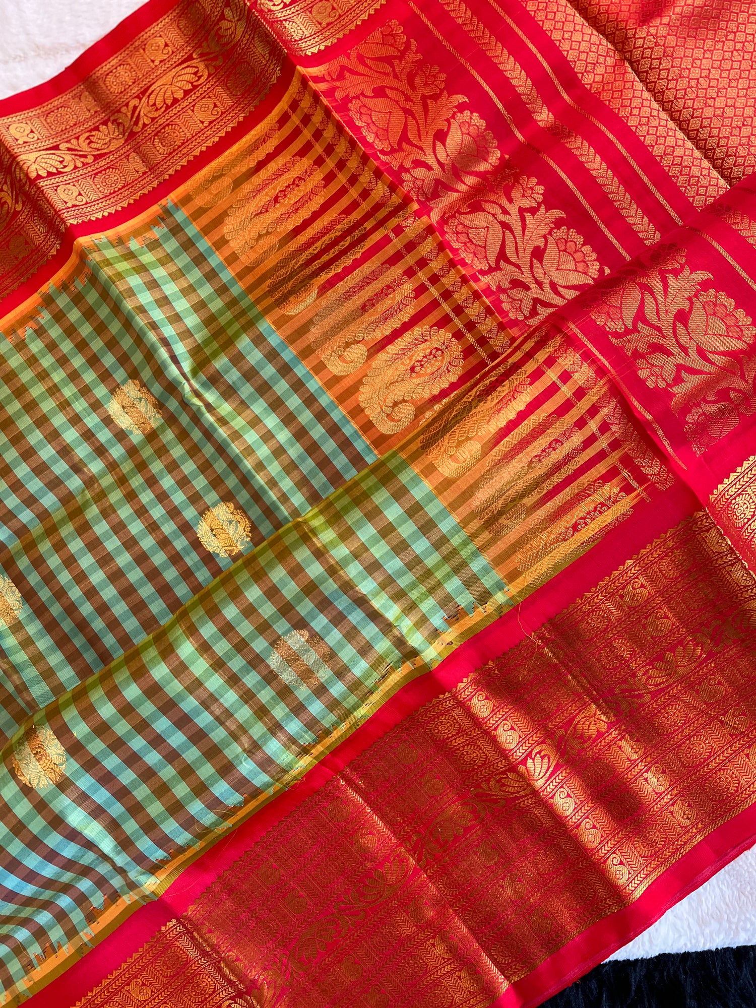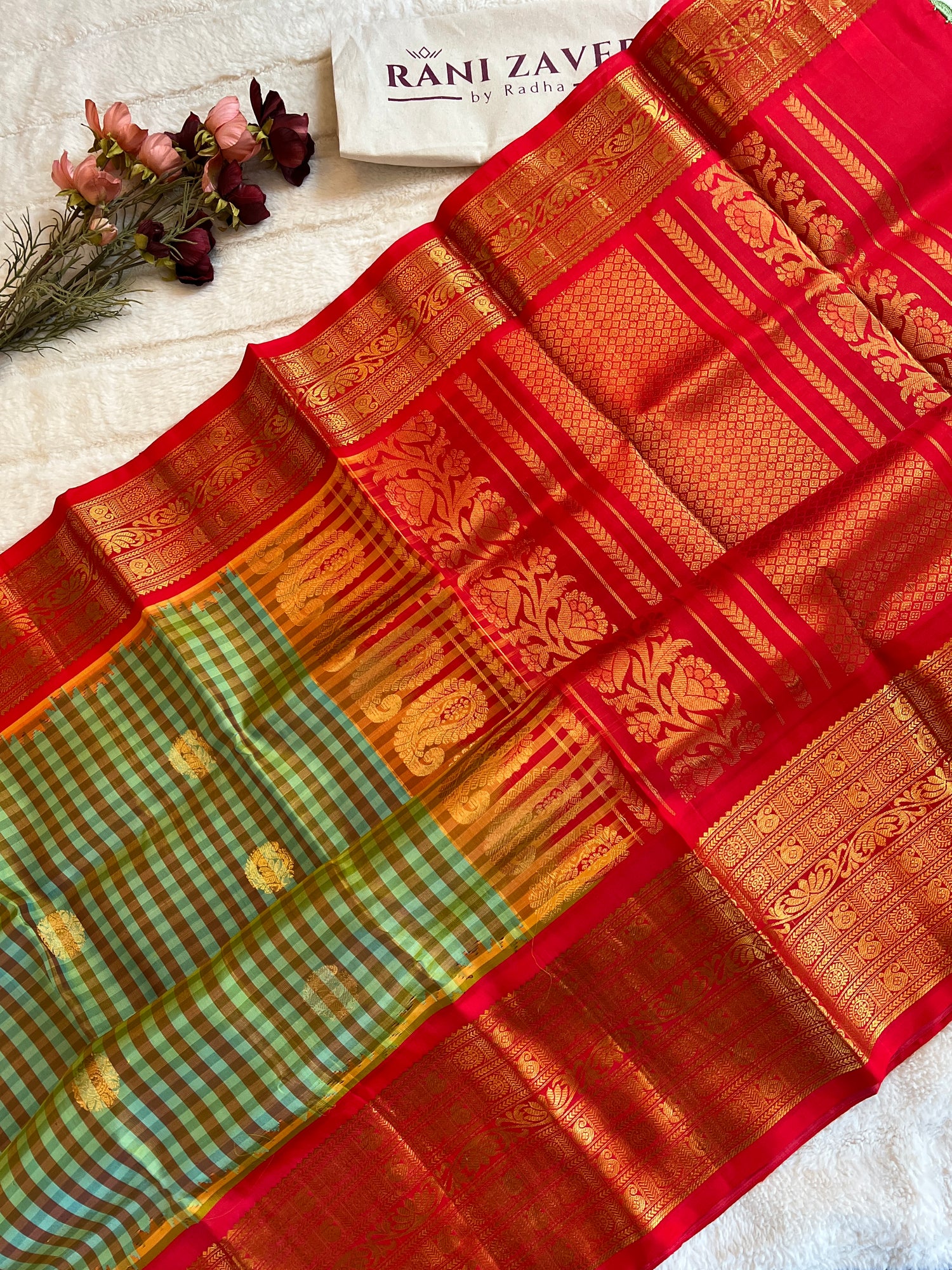 Checks Long Border Kanchi Gadwal Handloom Pure Silk