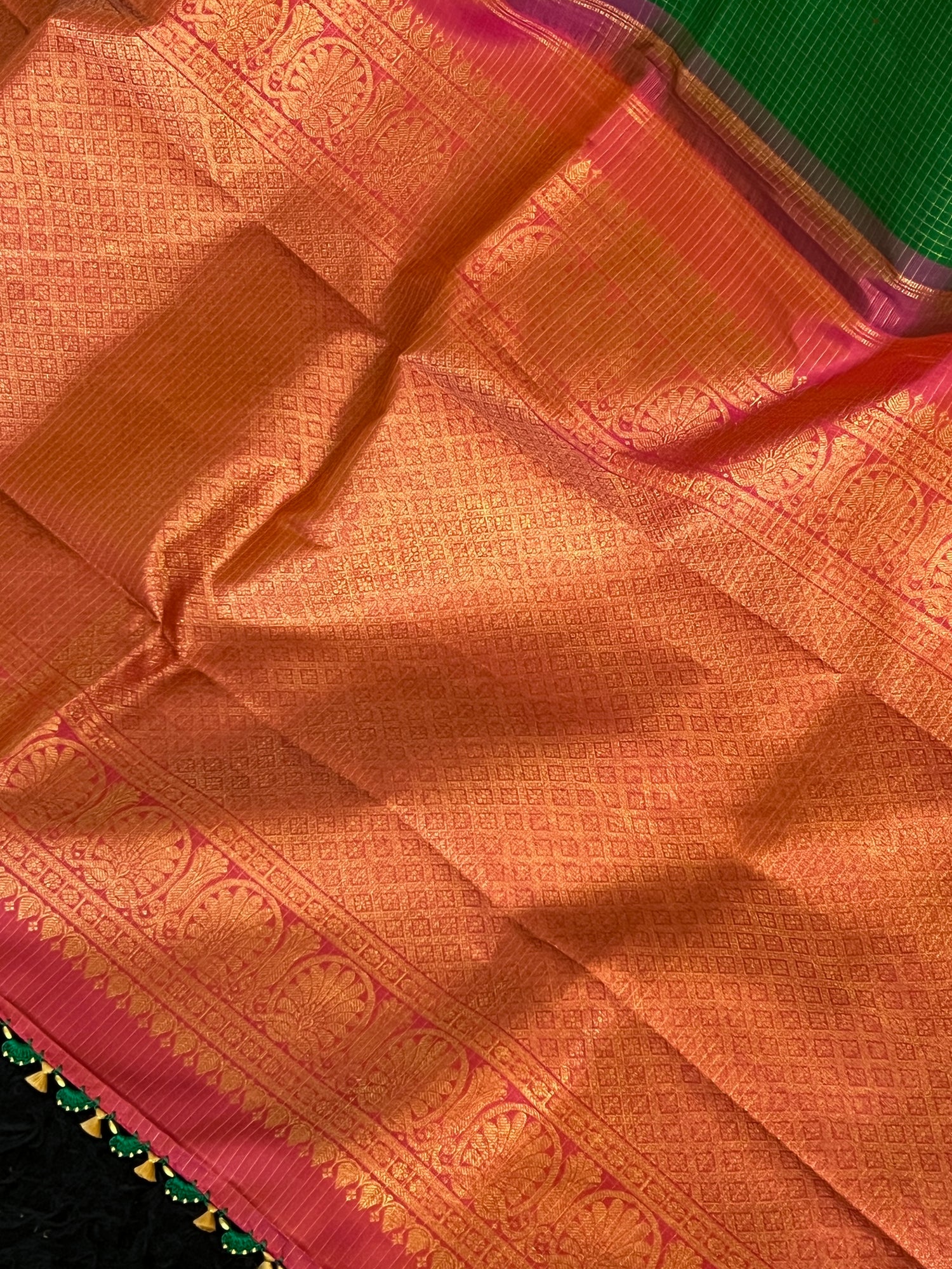 Korvai Kanchipuram borderless pure silk Green
