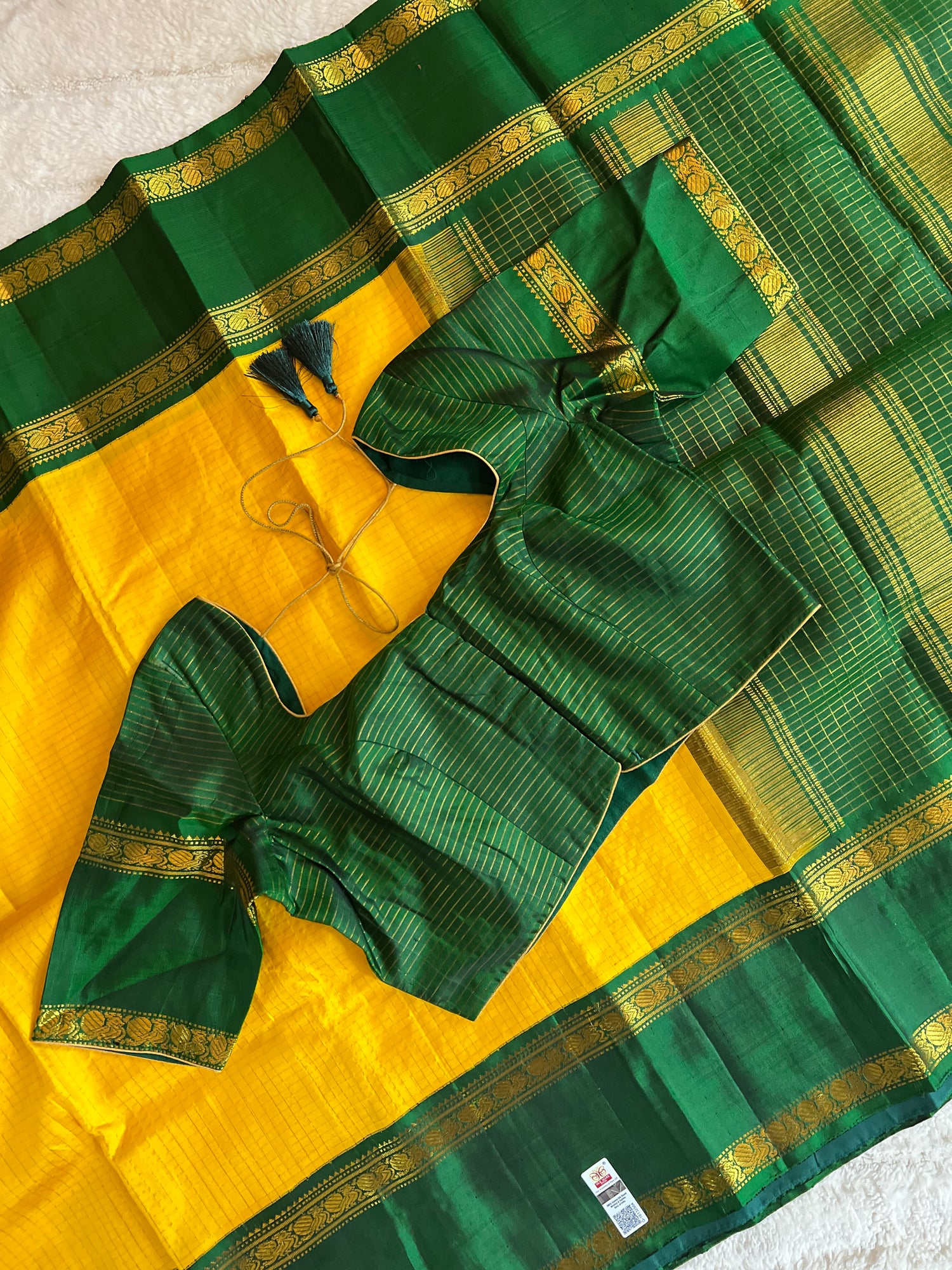 Yellow Green Kanchipuram Korvai Vairosi Pure Silk