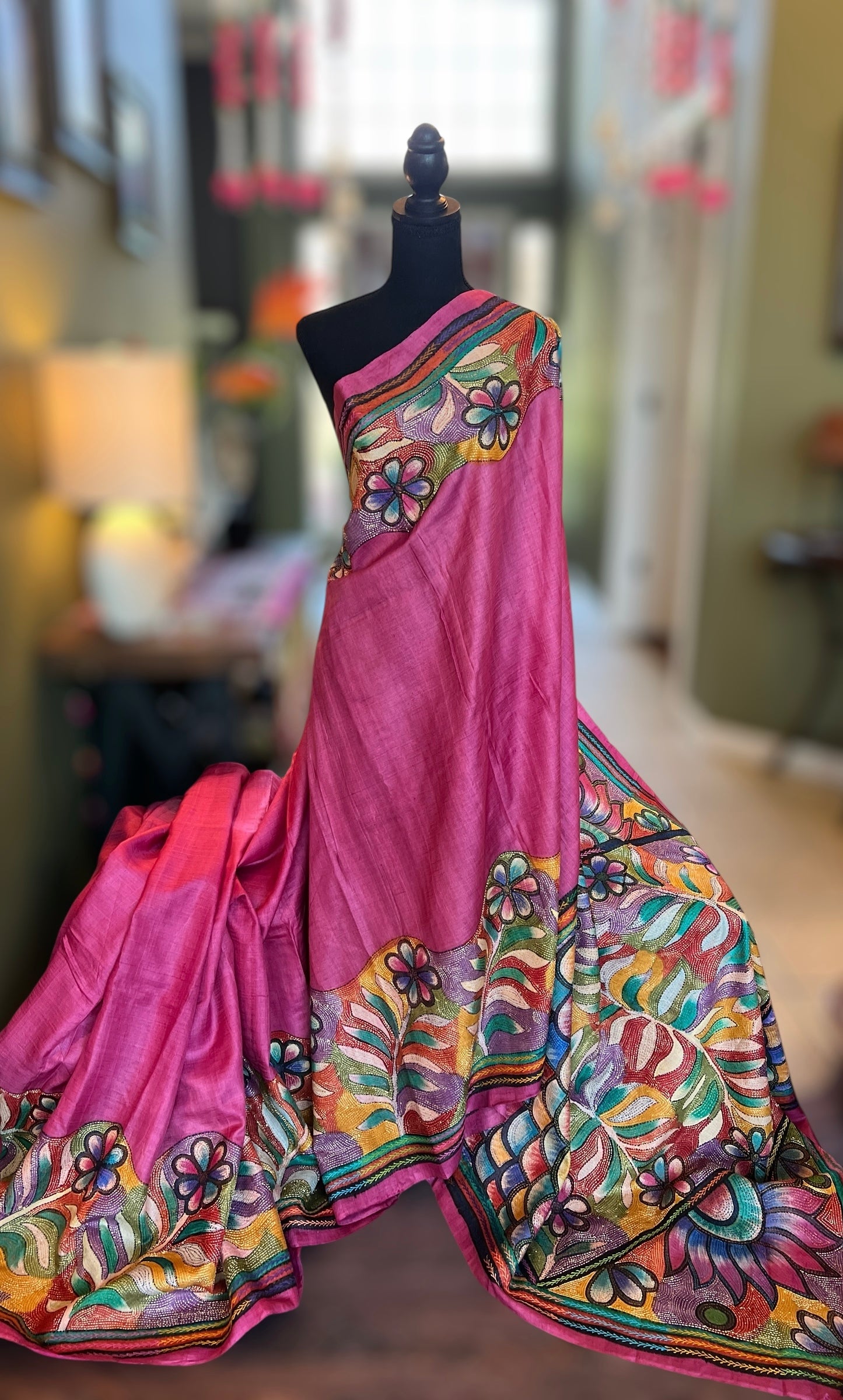 Pink Hand Katha Stitch Gachi Tussar Silk is backordered and will ship as soon as it is back in stock.